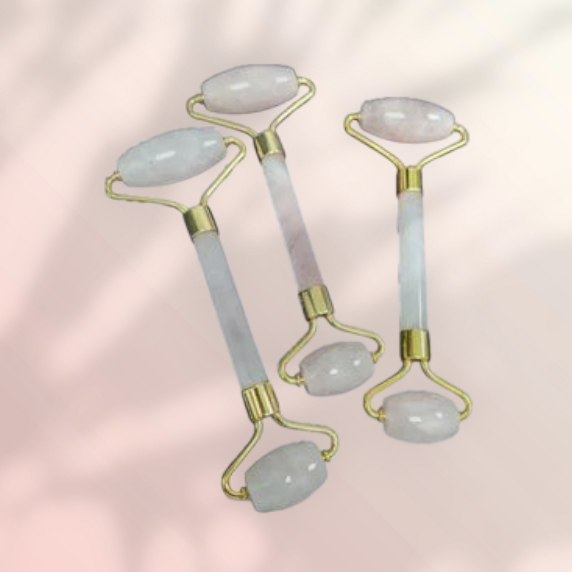 El masajeador facial de cuarzo rosa destaca por su piedra natural, conocida por sus propiedades calmantes y equilibrantes.