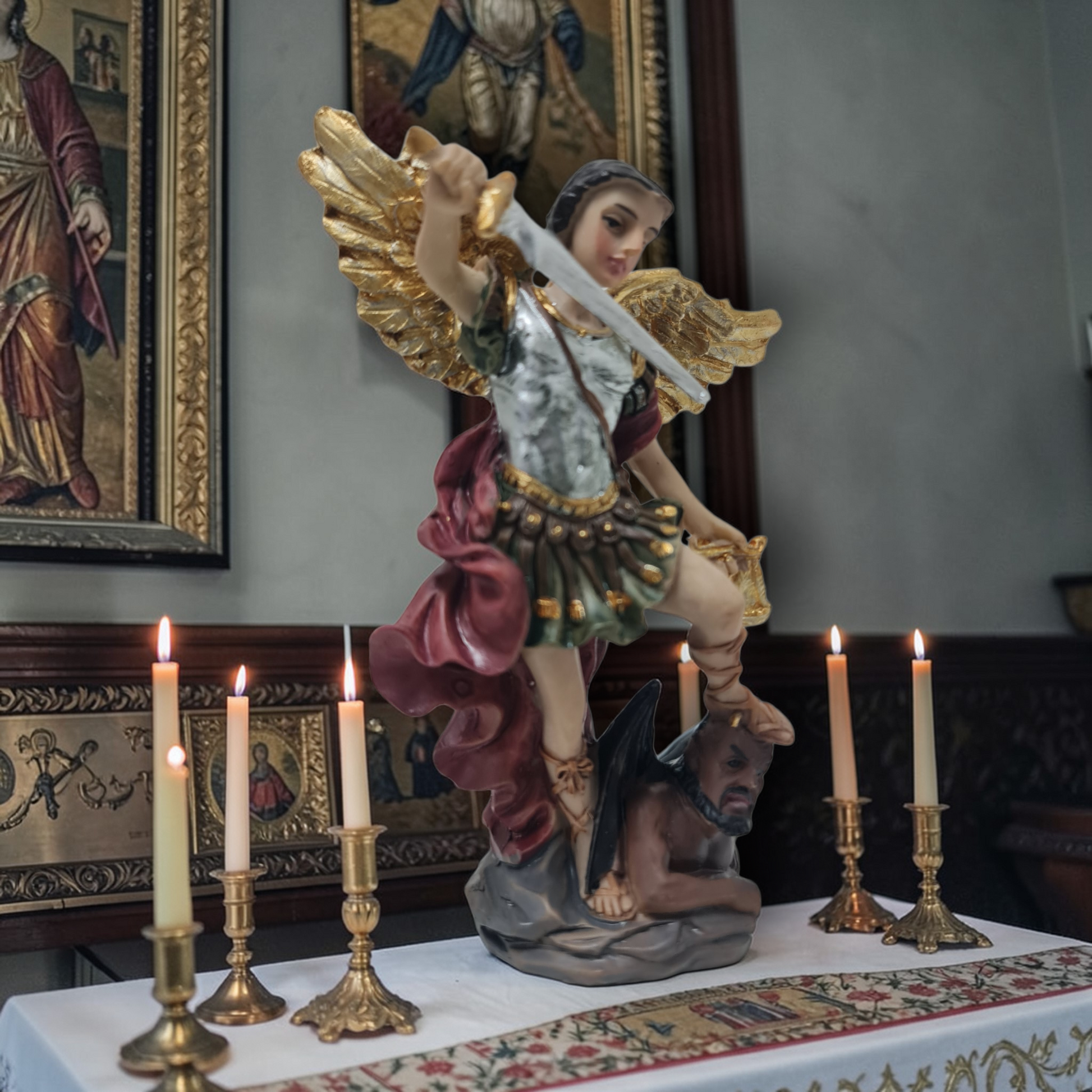 La imagen de Arcangel San Miguel de 9cm , en resina ,transmite protección y paz. Ideal para quienes buscan una presencia celestial en su hogar.