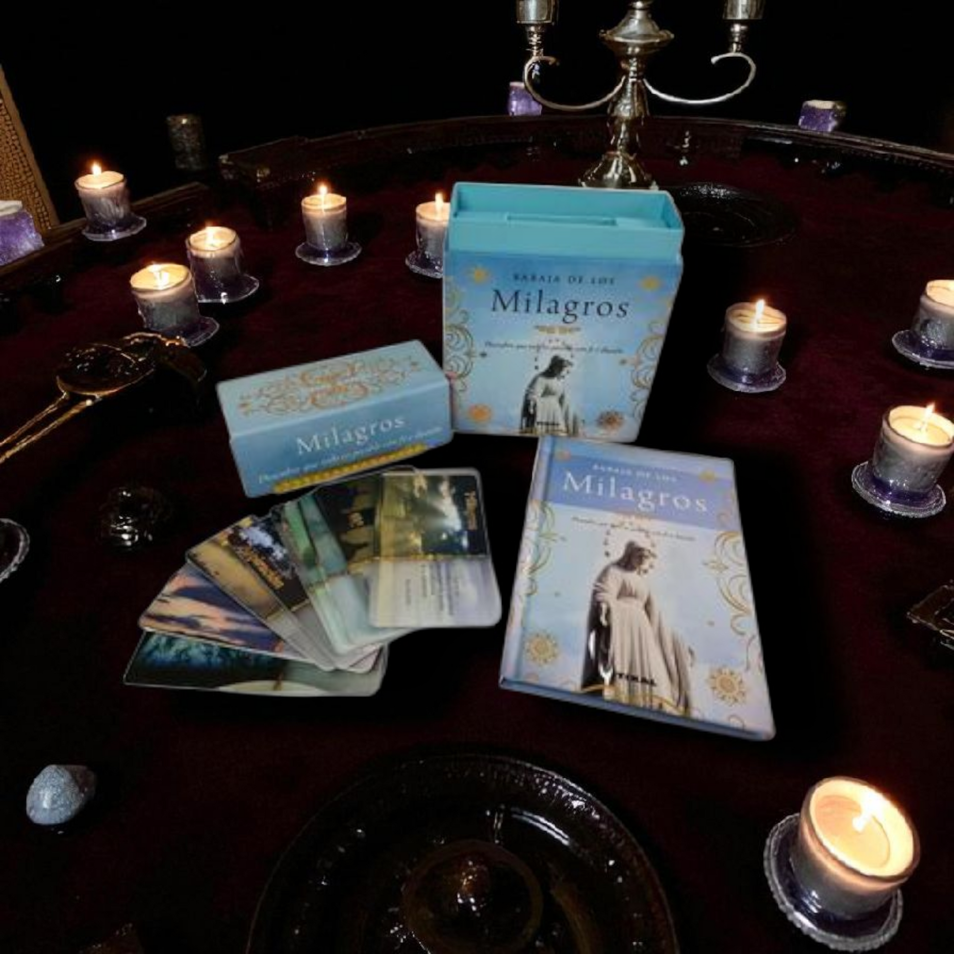 La baraja de los Milagros incluye 40 cartas inspiradoras y un libro que reflexiona sobre el fenómeno milagroso, presentando hechos prodigiosos de diversas culturas.