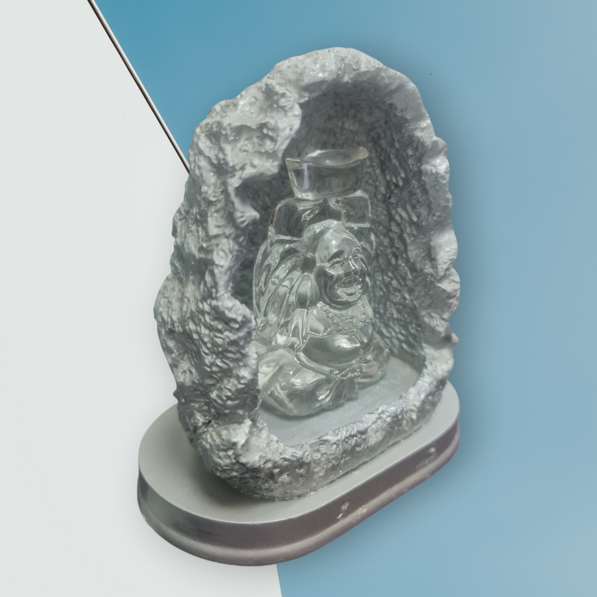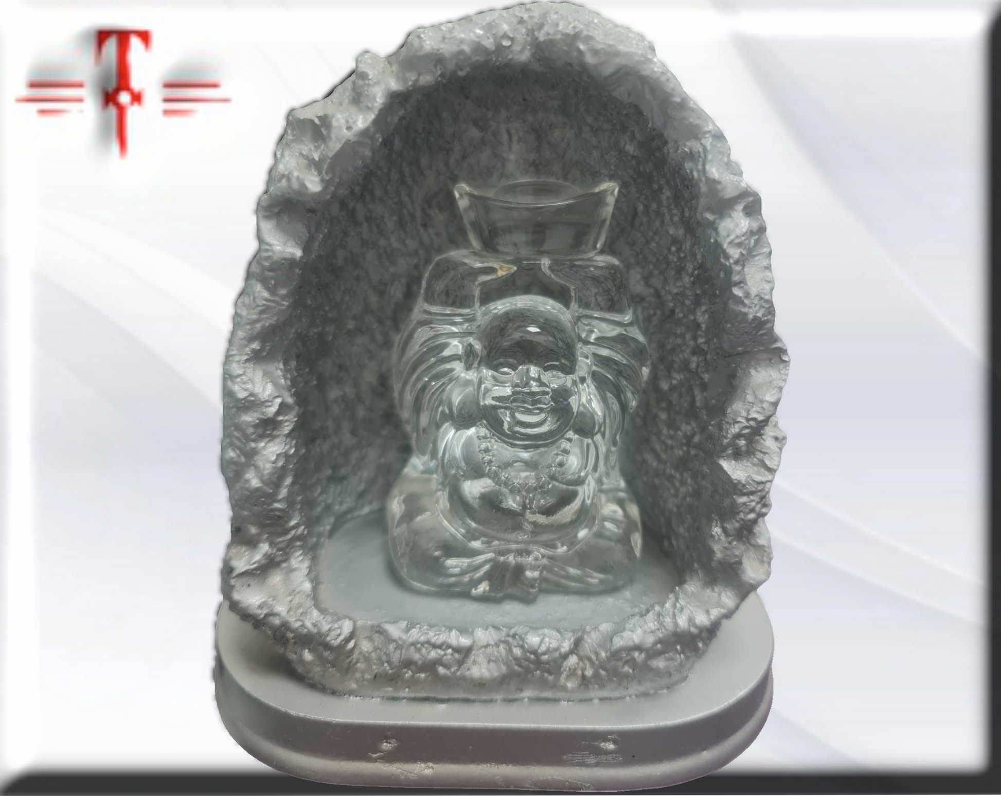 Descubre la paz interior con la Buda de cristal en cueva, un símbolo de felicidad y fortuna.