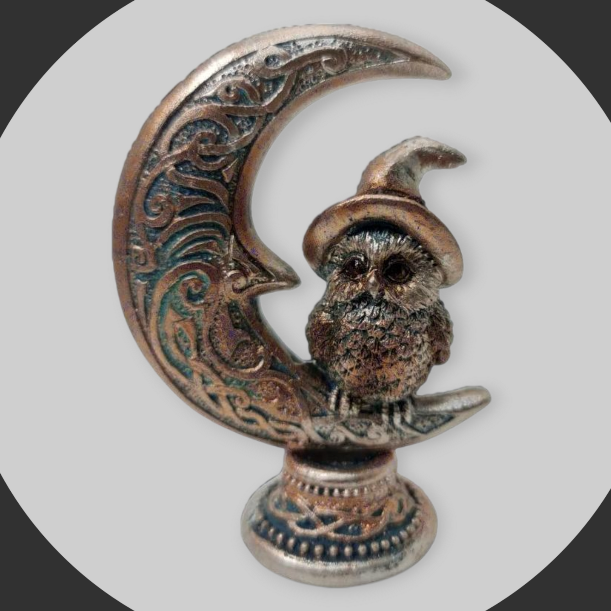 .El "Buho con luna" es más que una estatua de resina de alta calidad.
