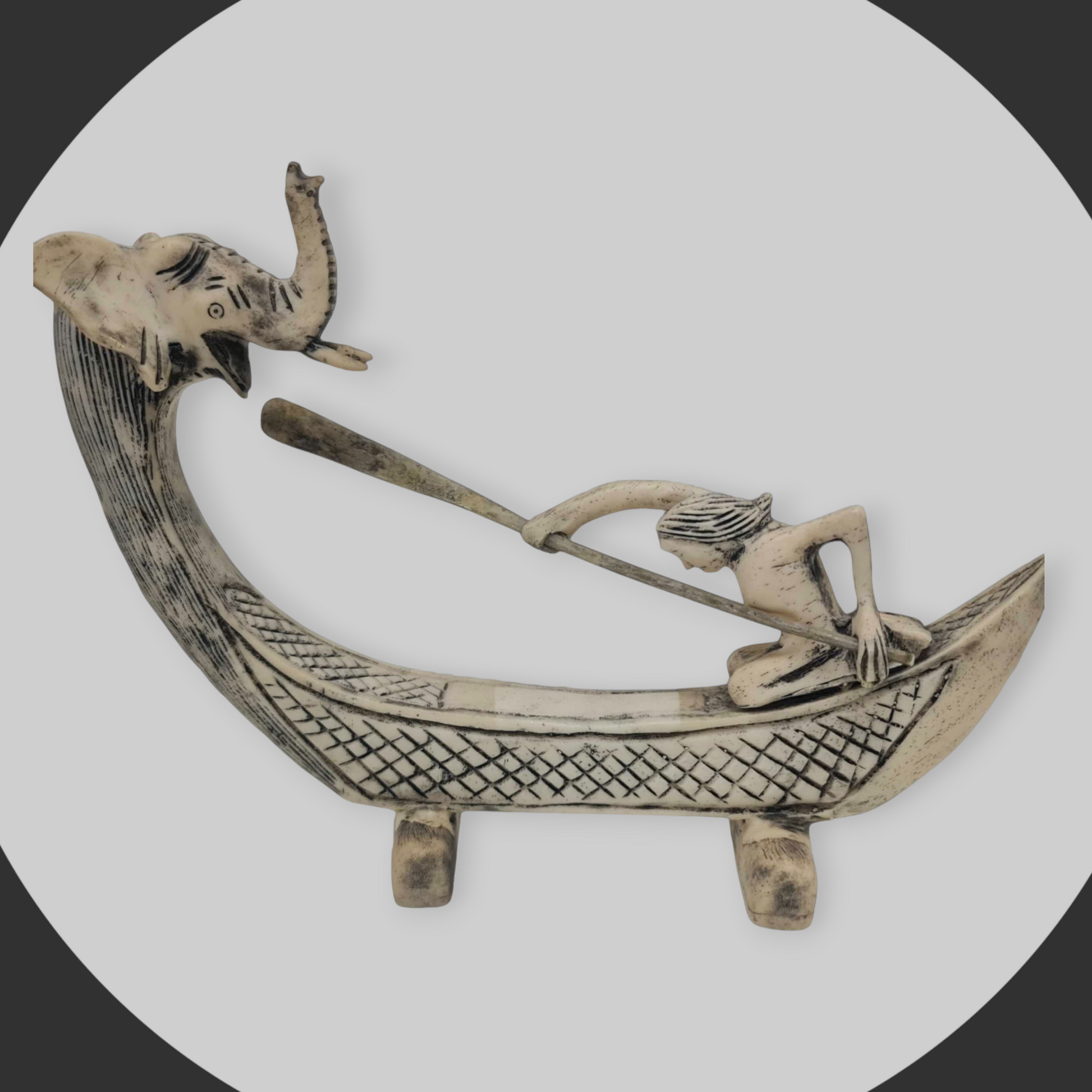La Canoa Elefante es una pieza única de decoración, con dimensiones de 20x28cm y un peso de 583gr.