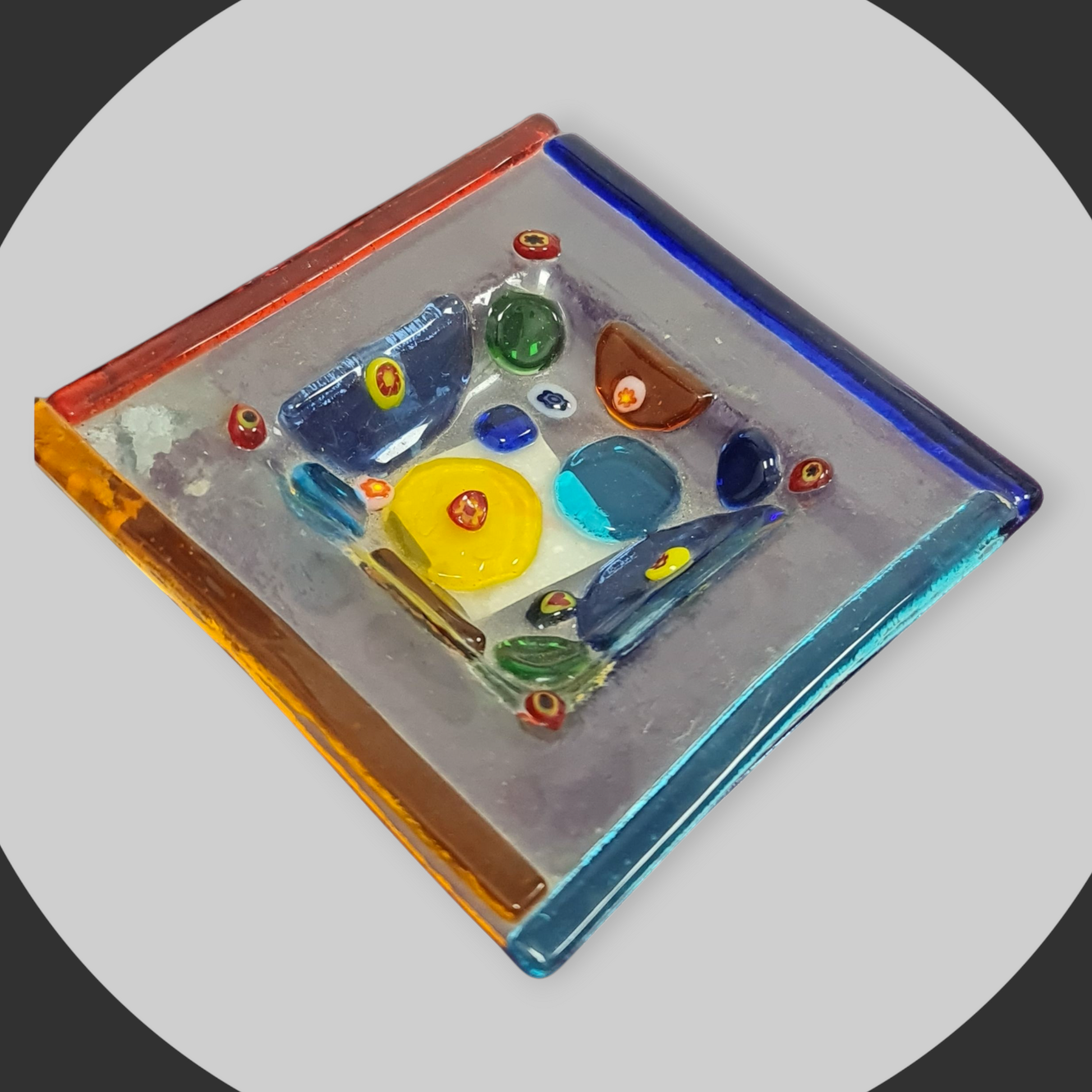 Con un diseño colorido y místico, este cenicero de cristal Murano de 10x10cm añadirá un toque de elegancia a tu espacio.