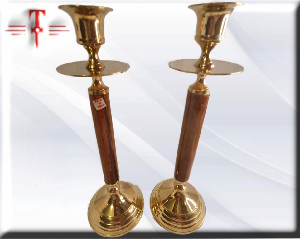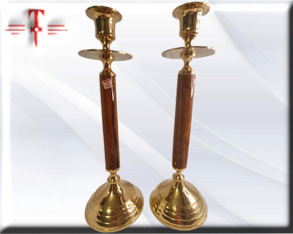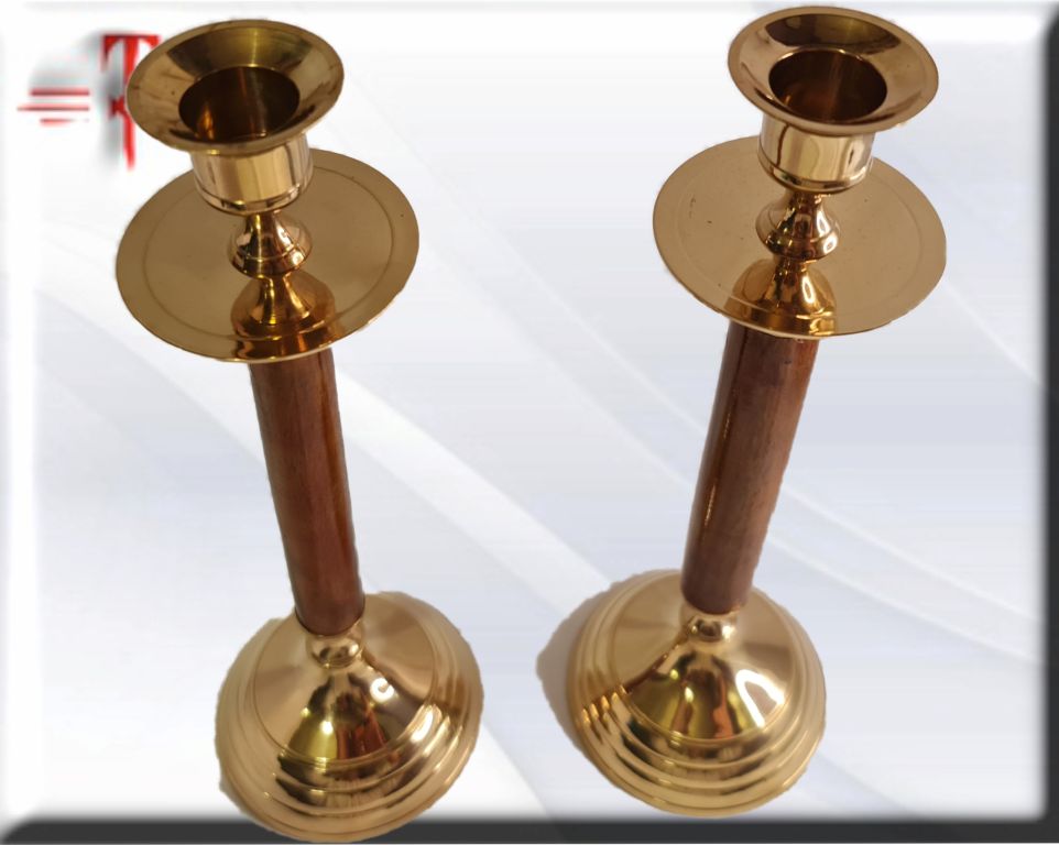 La pareja de candelabros de latón y madera es la combinación perfecta de elegancia y estilo para tu hogar.