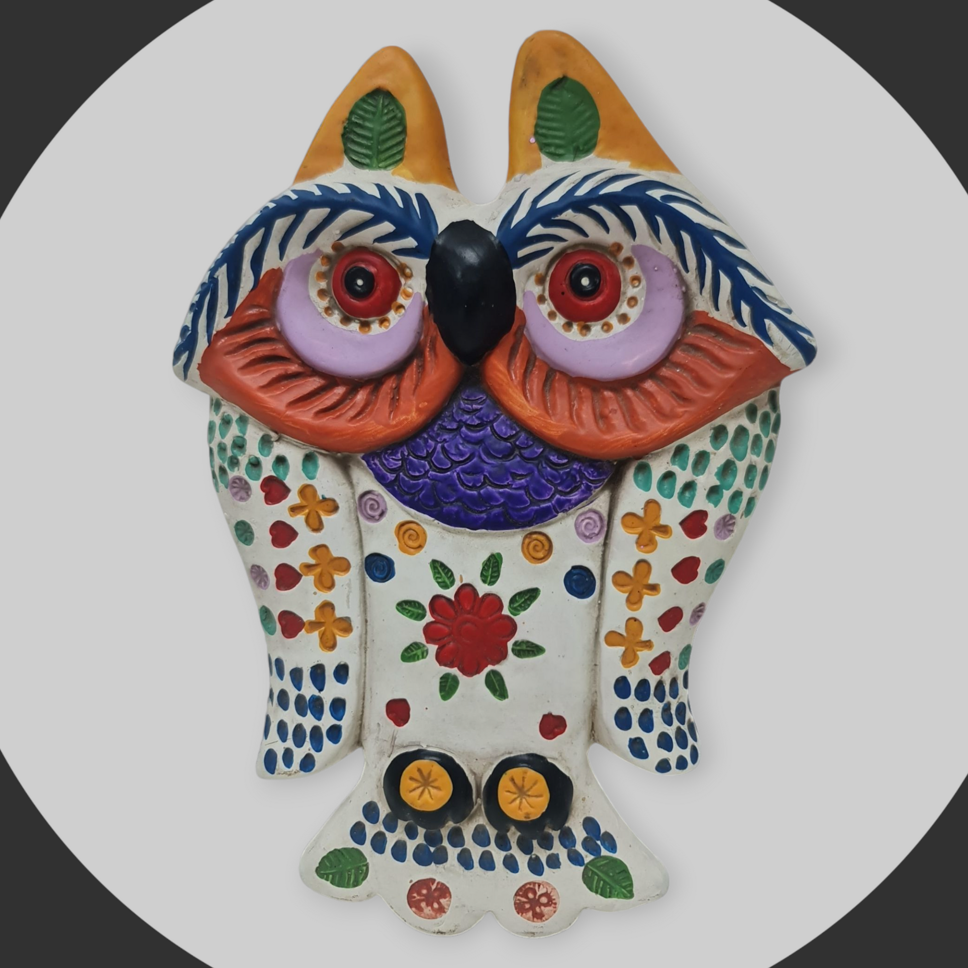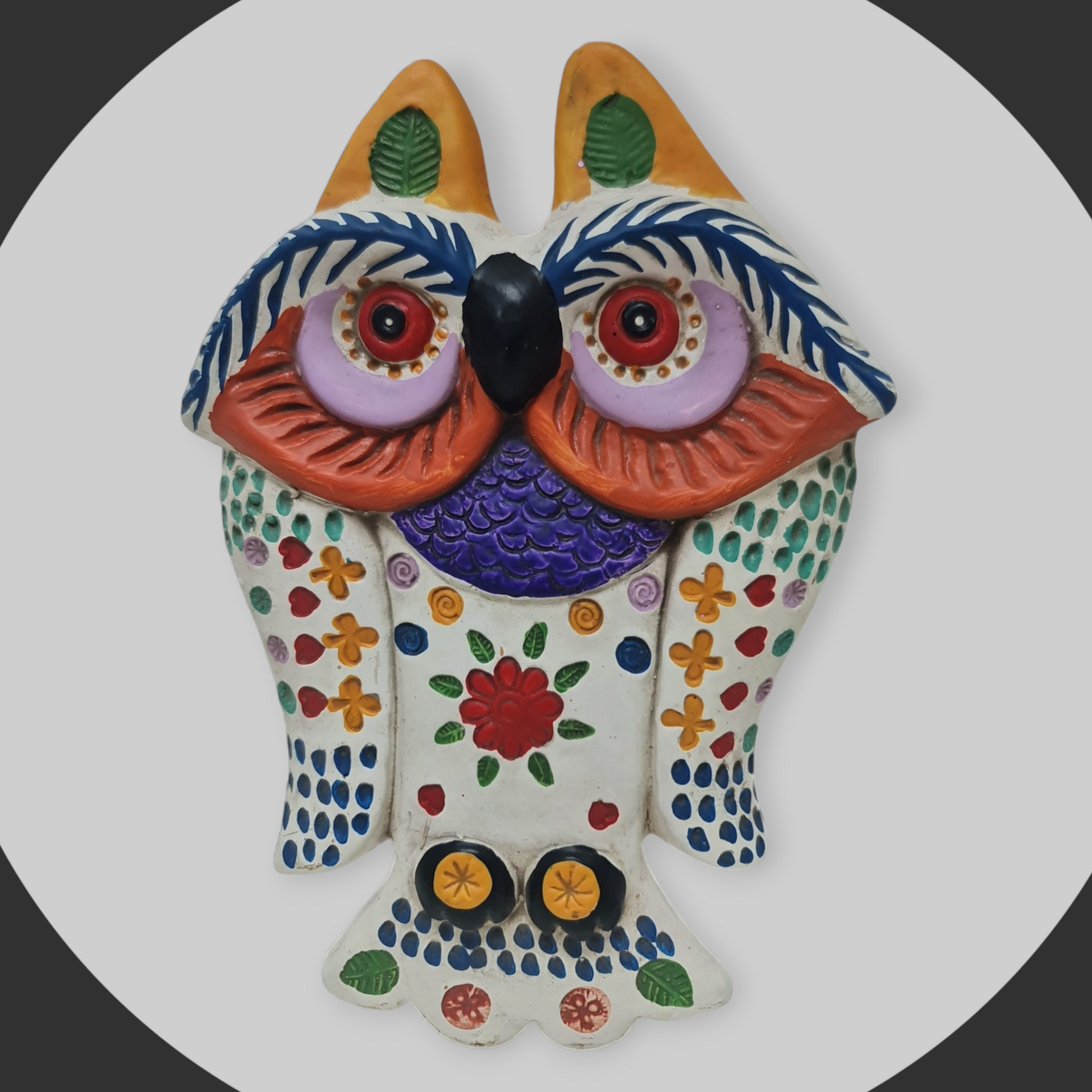 Hecho a mano en arcilla y pintado con detalle, este colgador de 20cm añade un toque encantador a tu hogar.