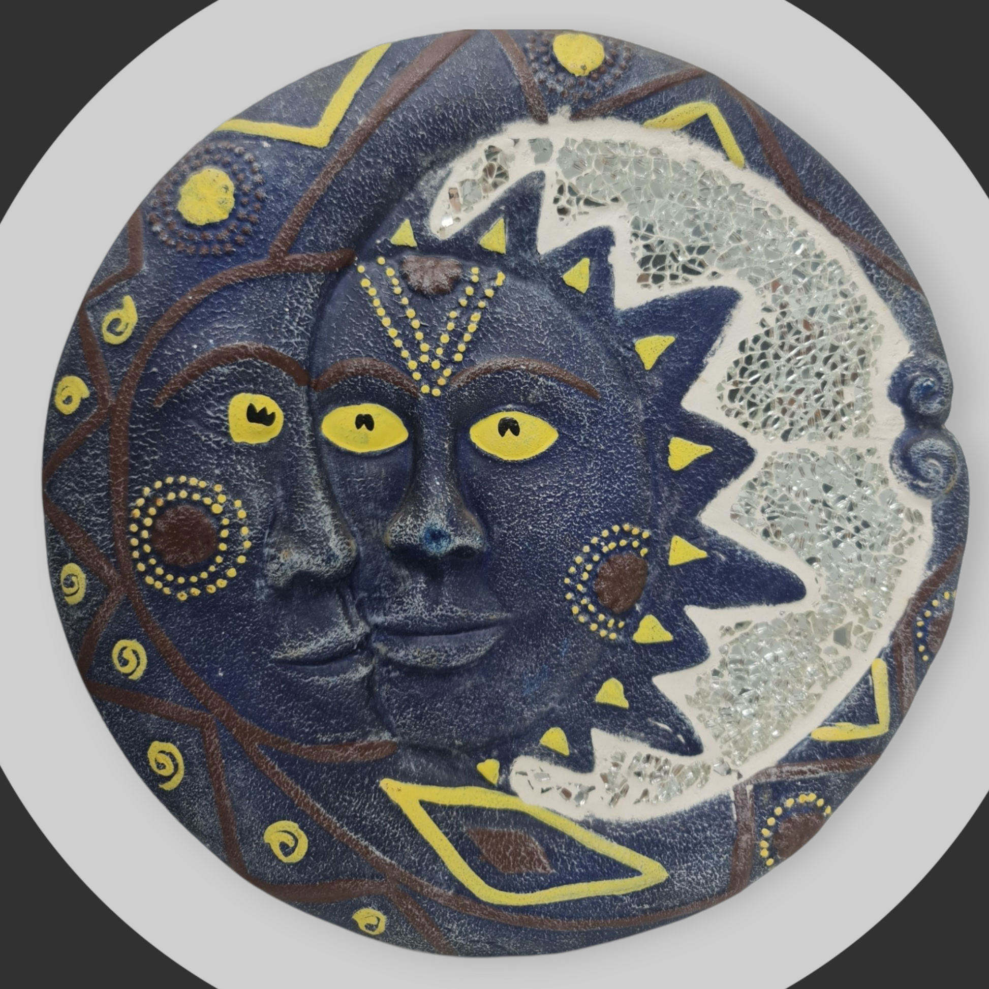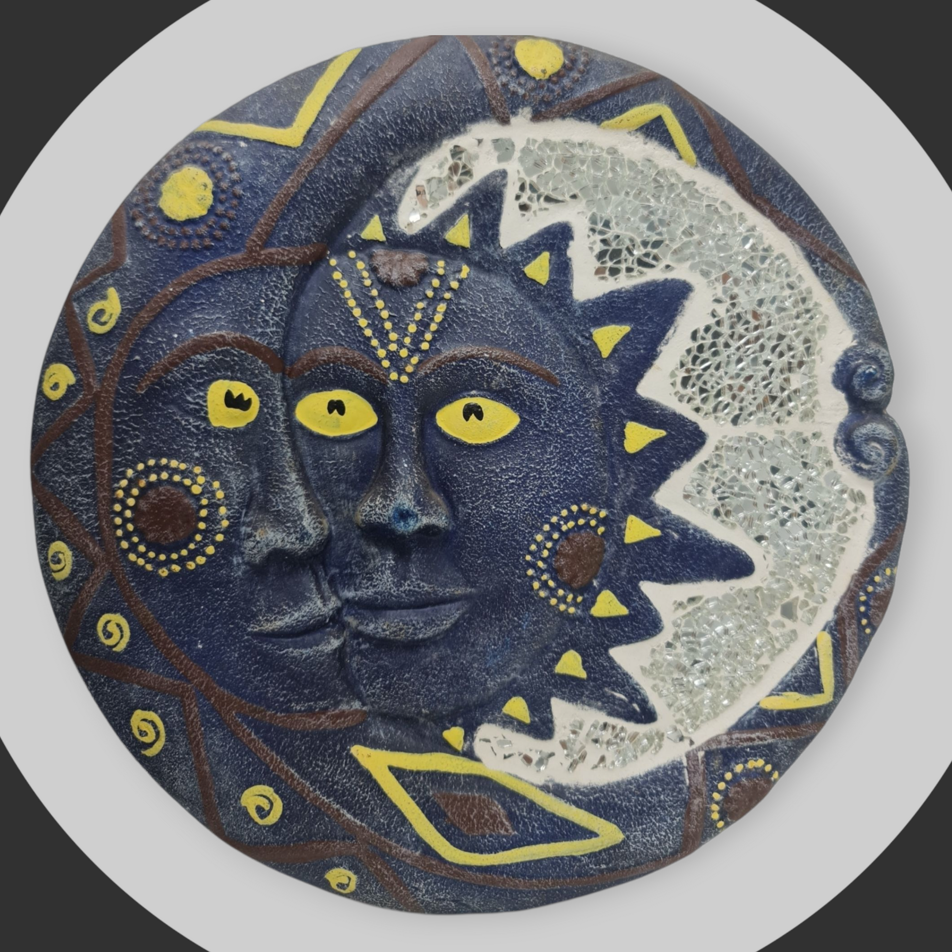 Con su diseño solar y lunar, este colgador de pared combina estilo y espiritualidad en un solo elemento decorativo.