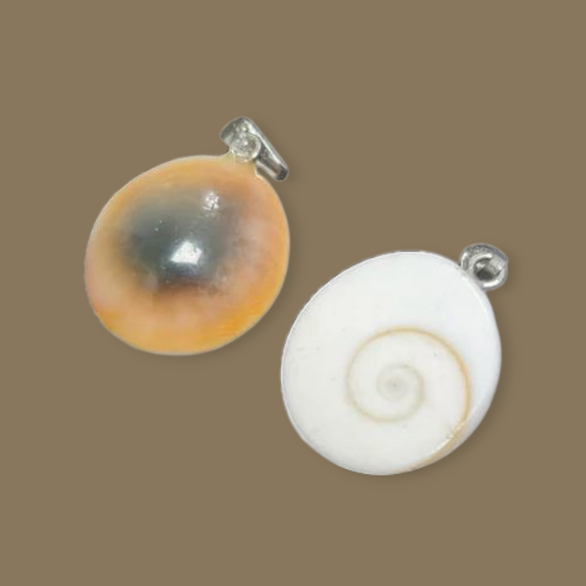 Colgantes de Opérculo natural presentan una forma ovalada, elaborados a partir de mineralización natural.