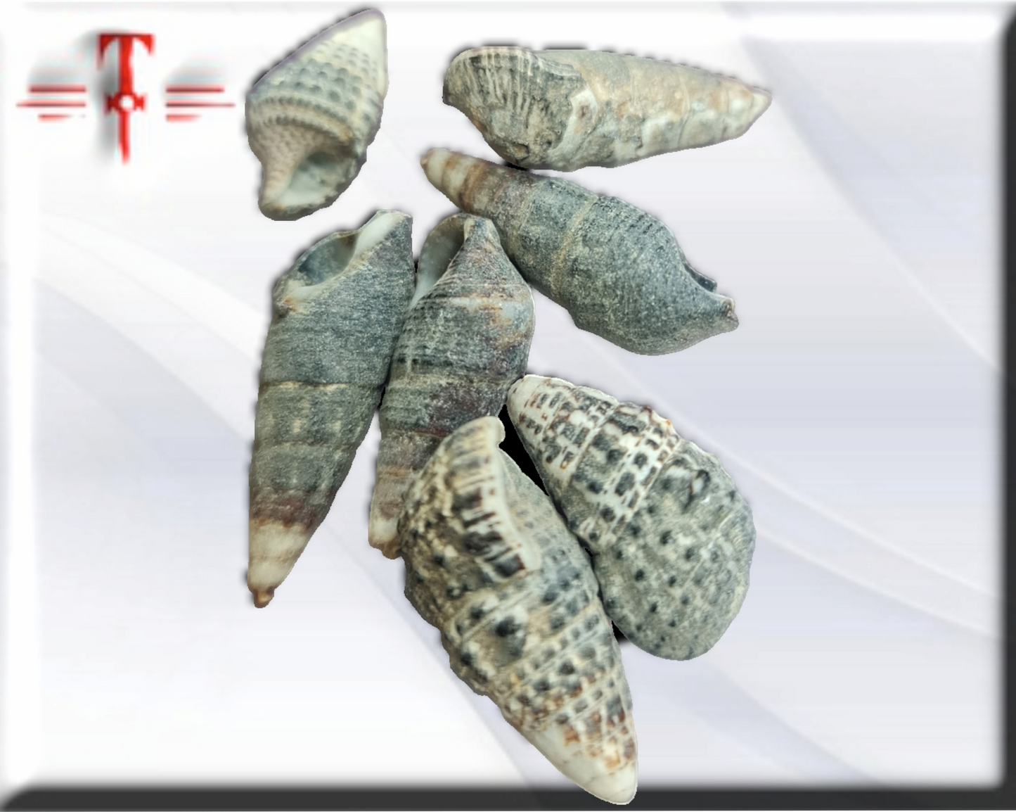 Conchas naturales de color grisáceo, ideales para diversas aplicaciones decorativas y artesanales.