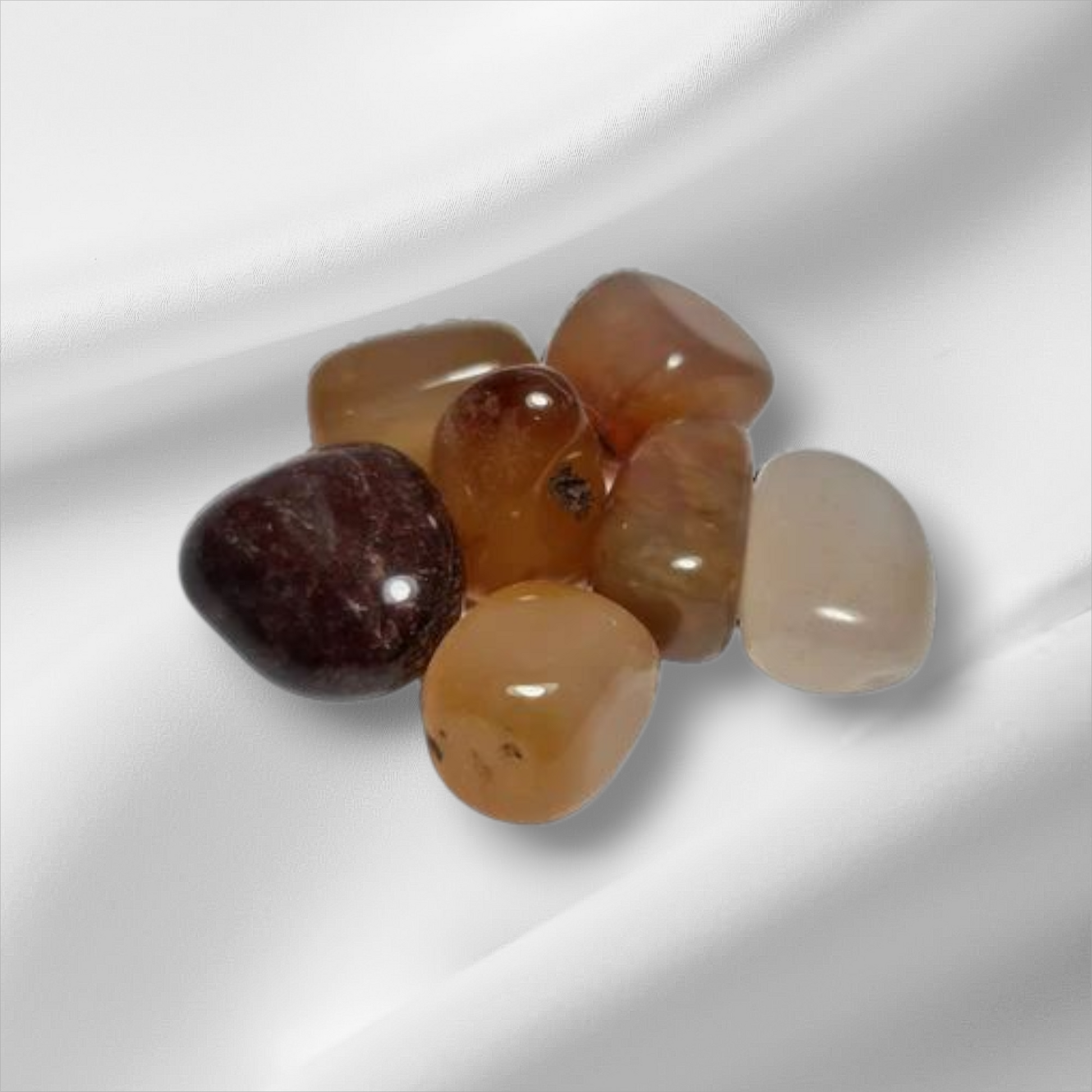 Su acabado pulido resalta las características naturales de cada gema, convirtiéndolas en elementos visuales atractivos.