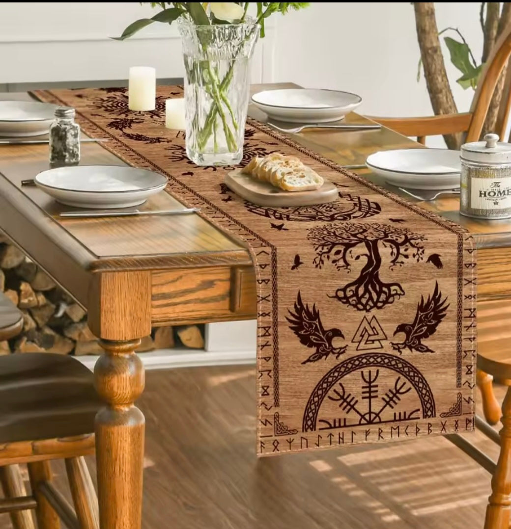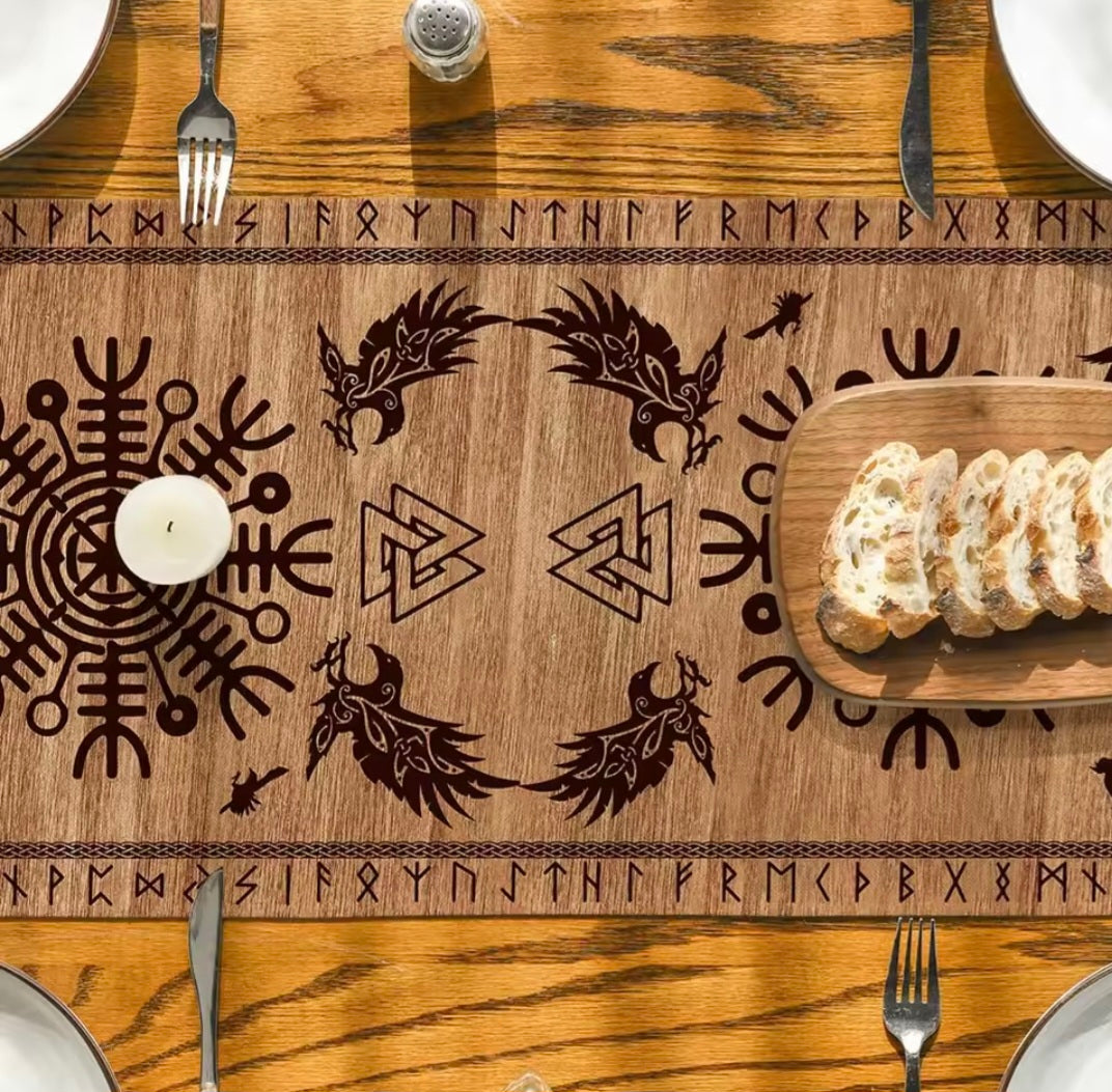Con un diseño inspirado en la mitología nórdica, este cubre mesa combina funcionalidad y estilo.