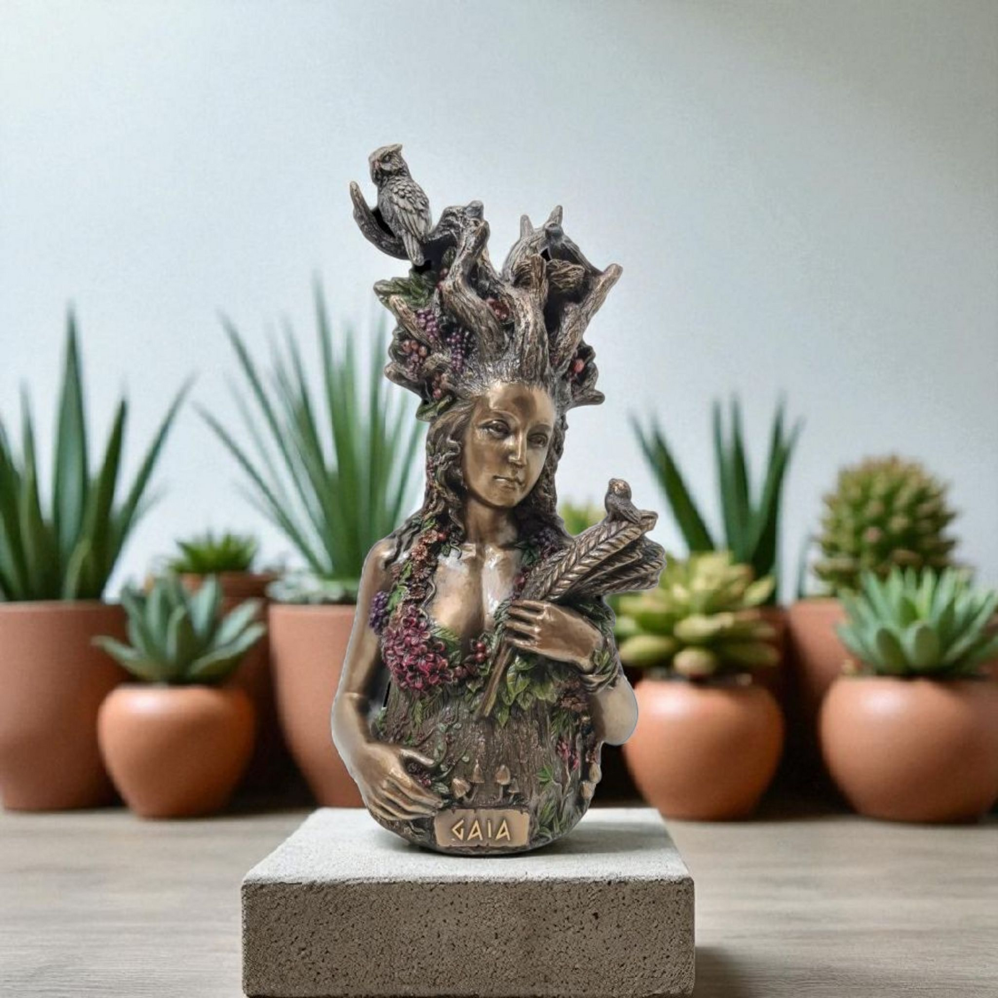 La escultura de la Diosa Gaia, con una altura de 26 cm y un peso de 1455 gramos, representa a la diosa de la Tierra en la mitología.