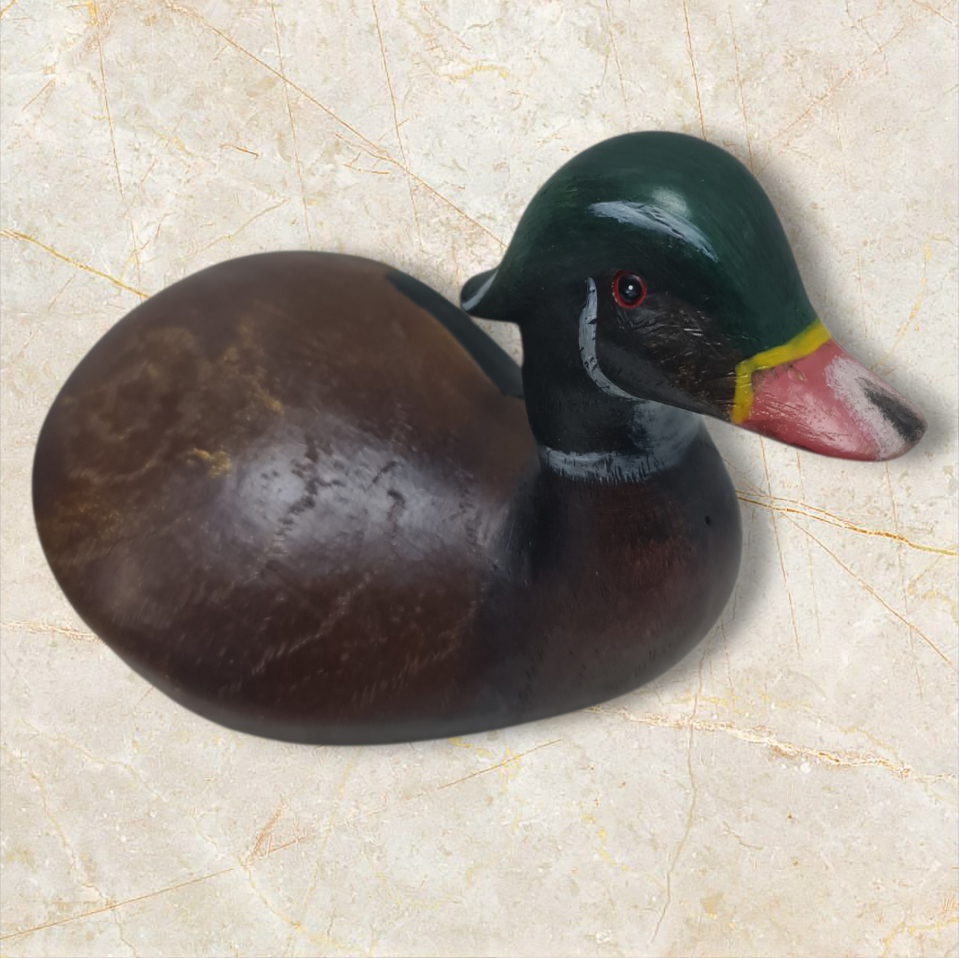 Con un diseño original en forma de palo de golf, este pato de madera es un complemento decorativo ideal para cualquier espacio.