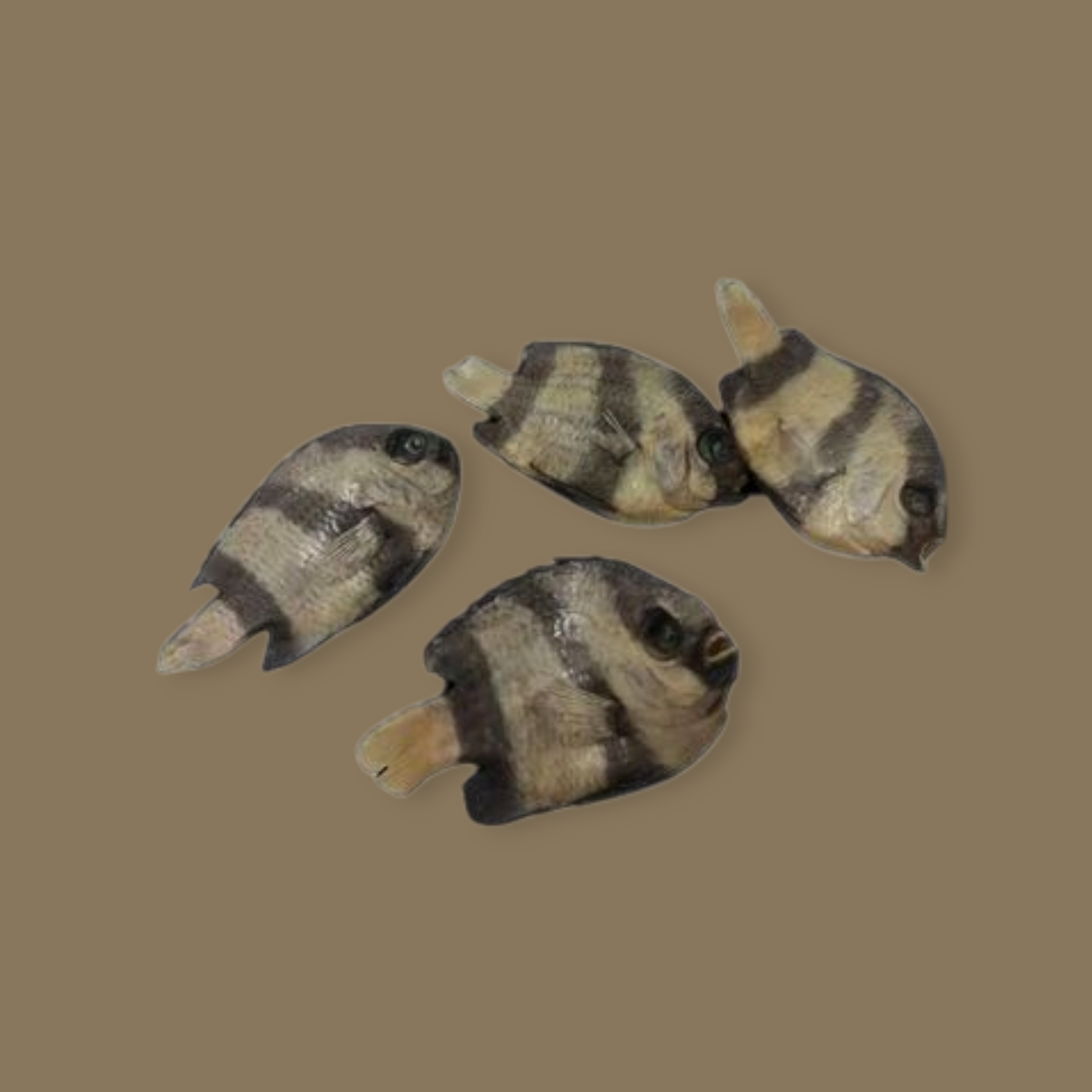 El pez disecado de 1-2 cm es un ejemplar cuidadosamente preservado, ideal para coleccionistas y aficionados a la taxidermia.