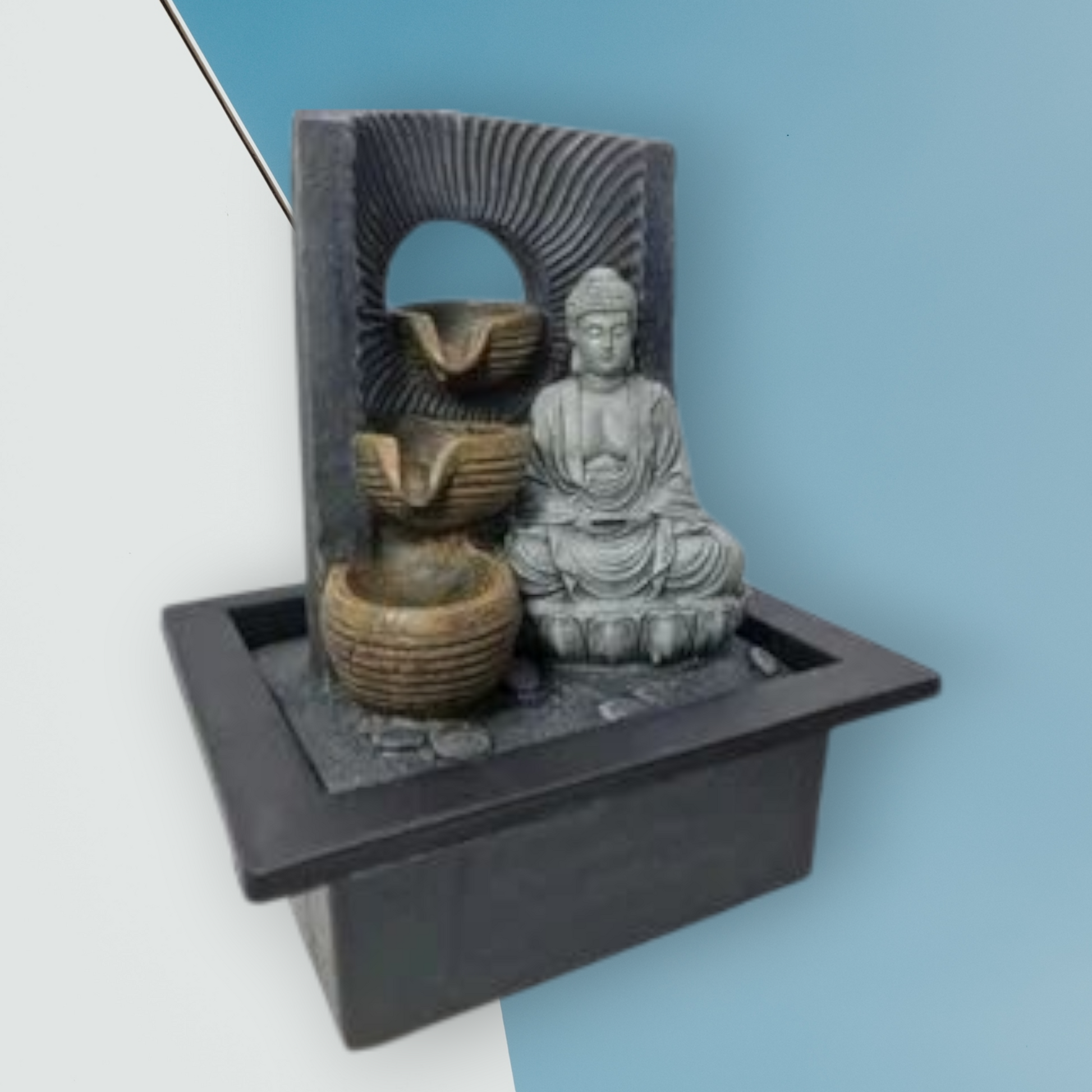 Esta figura emana bondad y calma, promoviendo un ambiente de serenidad en cualquier espacio. Ideal para la meditación o como elemento decorativo, la fuente contribuye a la conexión personal y a la armonía en el hogar.