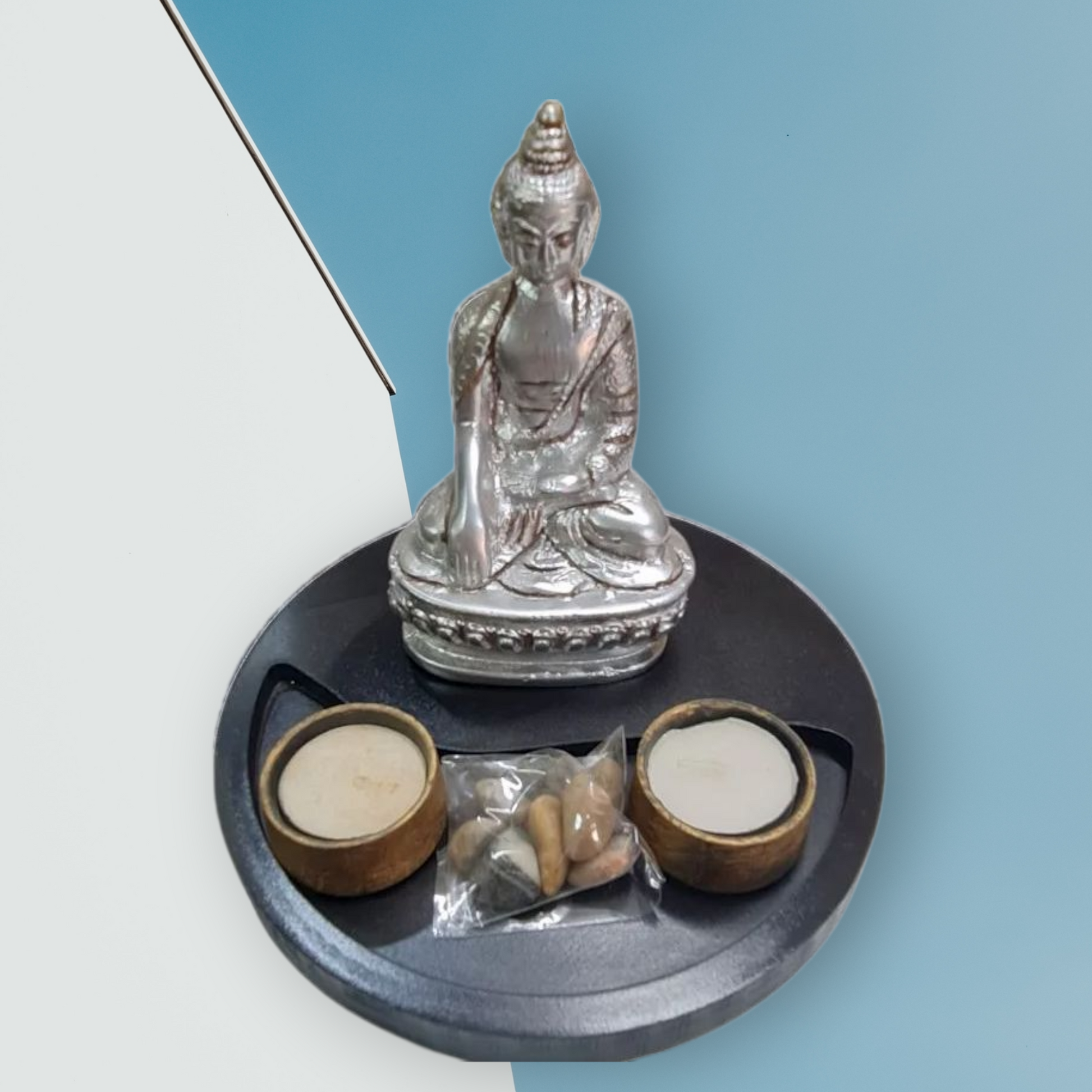 La Fuente Buda, con un tamaño aproximado de 25 cm, es una representación simbólica de la iluminación y la sabiduría en la tradición budista.