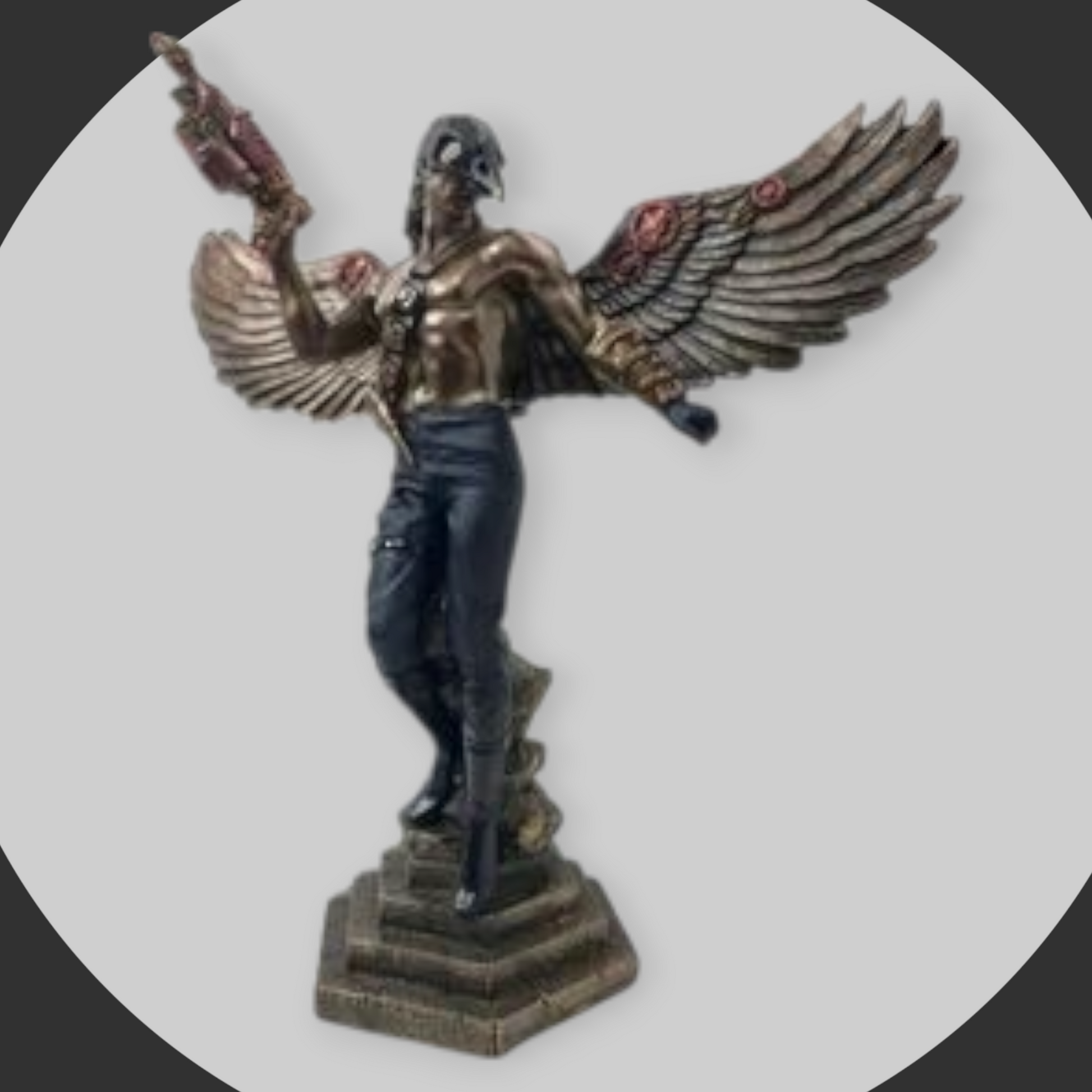 Las alas y la máscara de cuervo aportan un toque distintivo y místico, haciendo de esta figura una adición llamativa para cualquier colección.