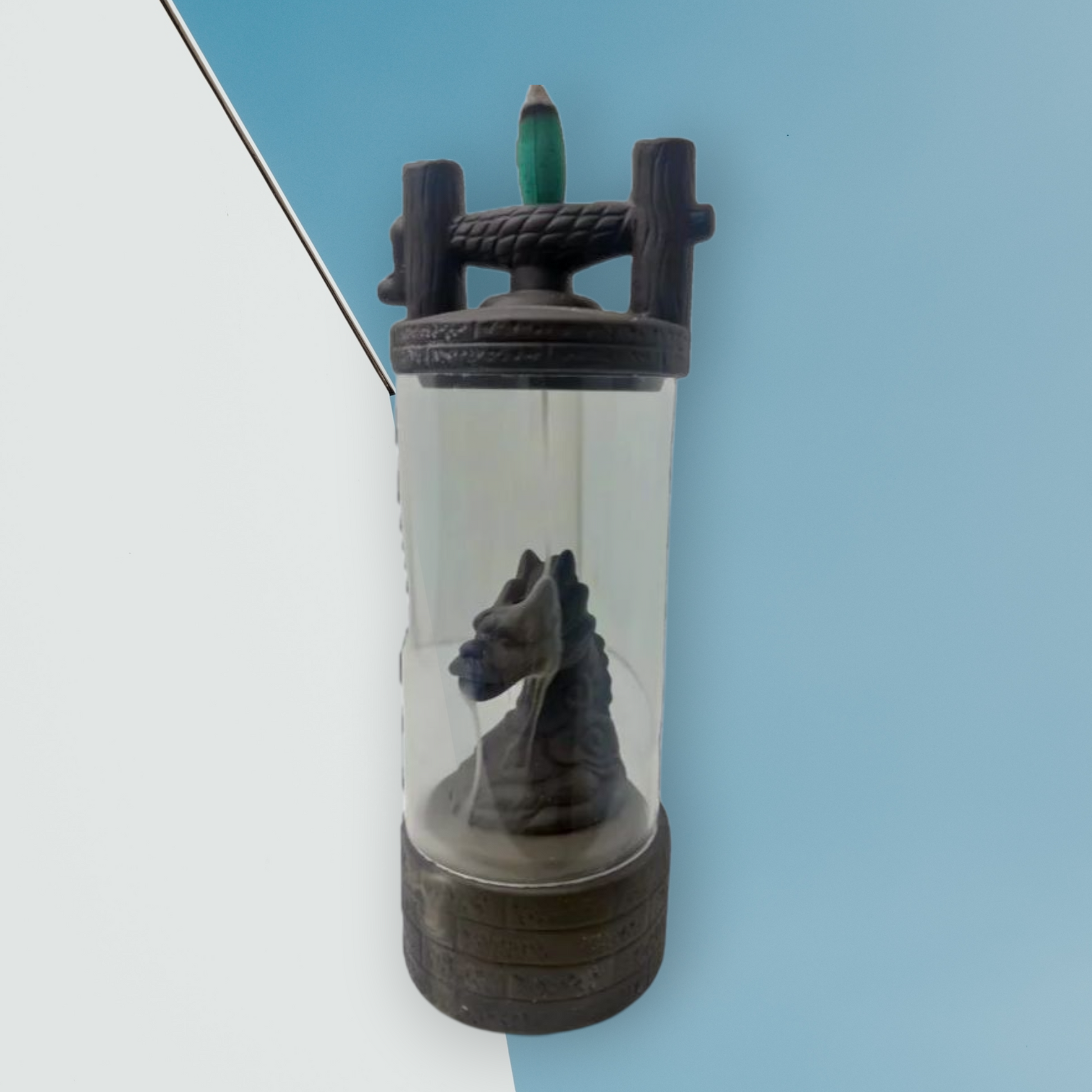 El "Incensario Reflujo Dragon" de 24cm ofrece una experiencia única: al arder, el humo fluye como una cascada, con una fragancia rica y duradera.