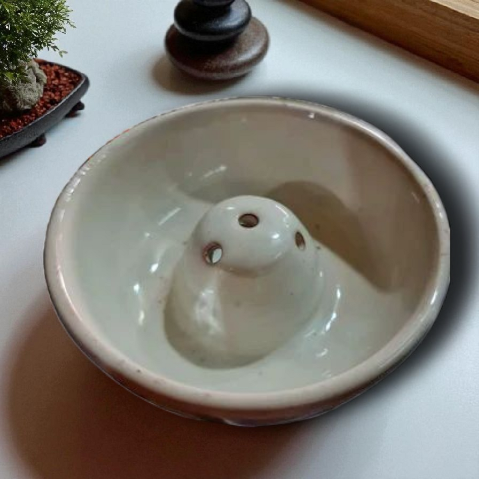 Ideal para ceremonias o momentos de meditación, el incensario de cerámica esmaltada es una pieza que combina funcionalidad y tradición, aportando un toque especial a cualquier espacio.