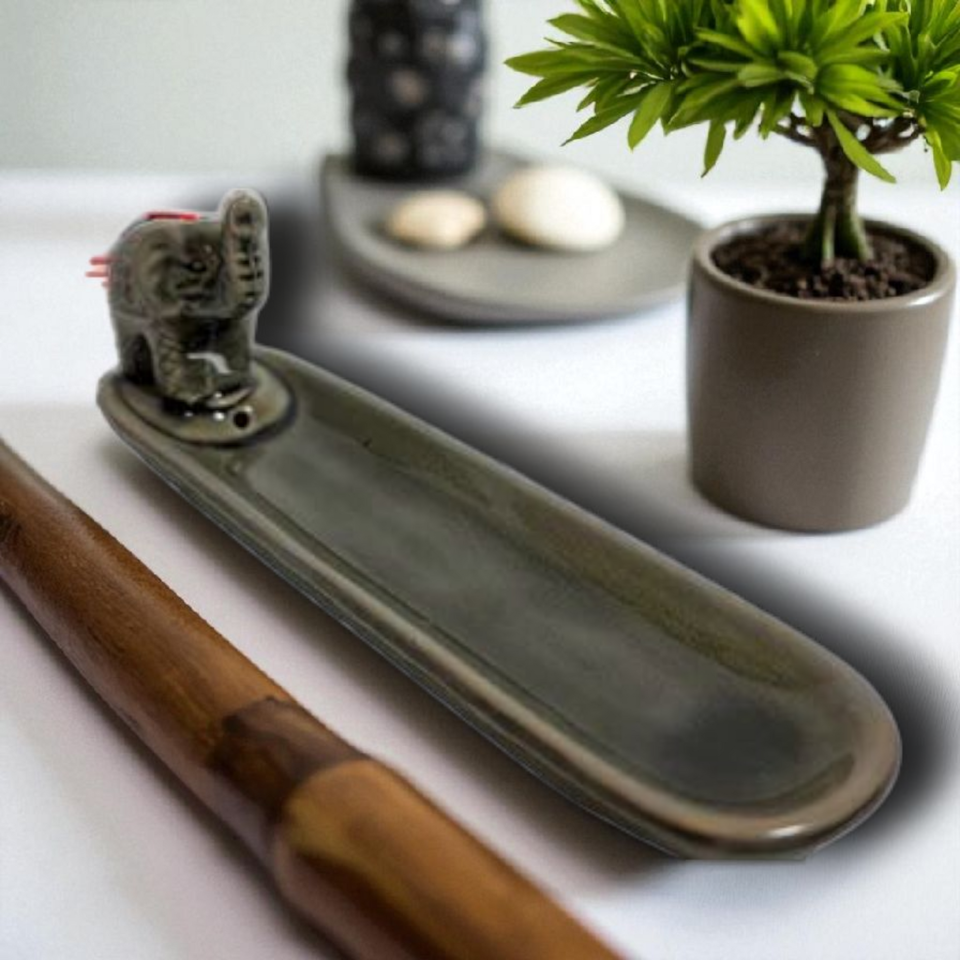 El diseño en forma de elefante de este incensario de cerámica no solo es decorativo, sino también funcional.