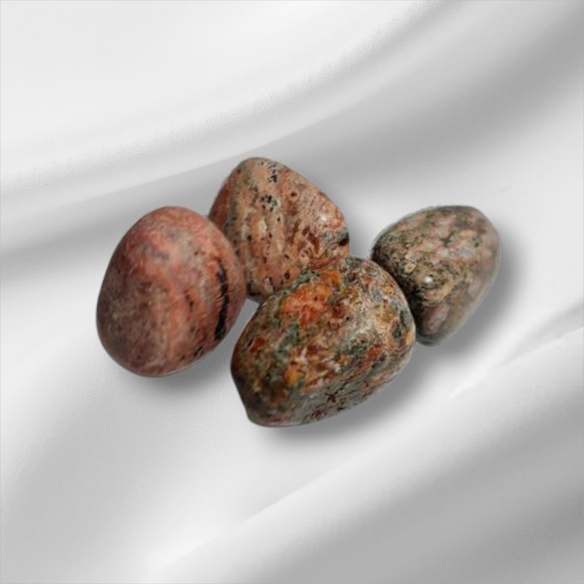 Su acabado pulido resalta las características naturales de cada gema, convirtiéndolas en elementos visuales atractivos.