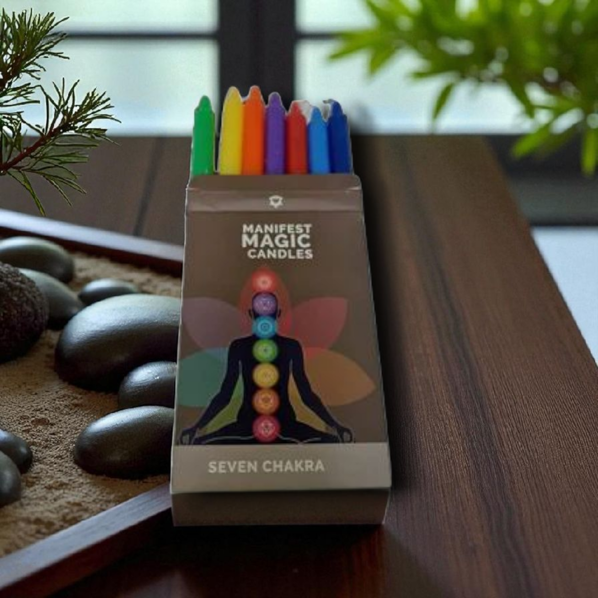 Un conjunto de velas especialmente diseñadas para trabajar con los siete chakras, cada una de 90 gramos.