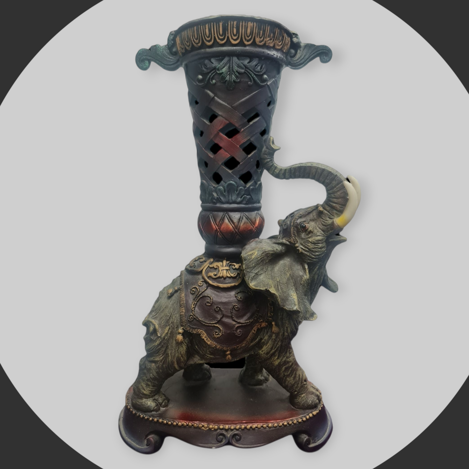 Descubre la belleza exótica del Porta velas Elefante, elaborado en resina de alta calidad.