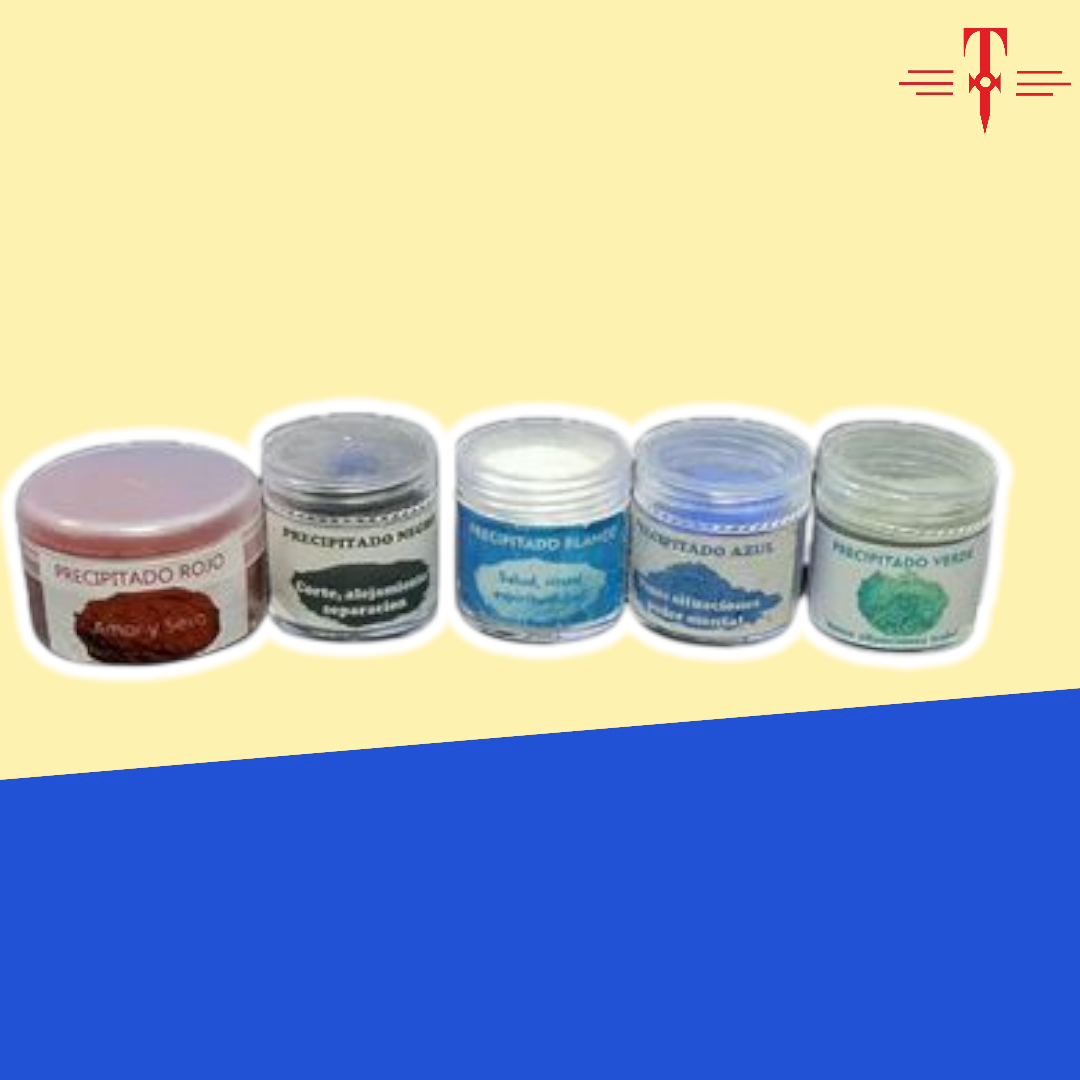 - El Precipitado Verde se relaciona con el guerrero Oggún. Simboliza la Esperanza, por lo que es muy utilizado en rituales relacionado con nuestro crecimiento personal, y ante cualquier proyecto que emprendamos para que nos de fortaleza y tesón.