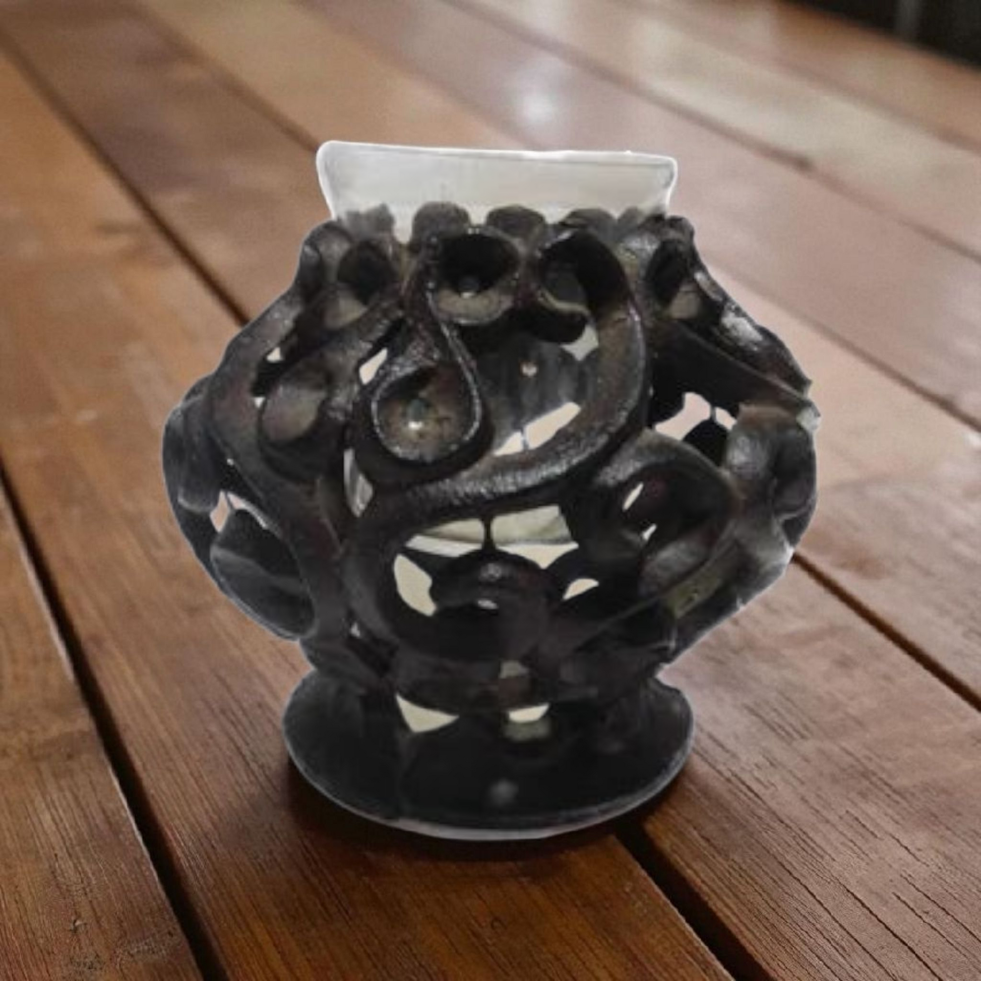El "Porta velas hierro fundido" de SPOTENCIAS es la elección perfecta para añadir un toque rústico y elegante a tu hogar.