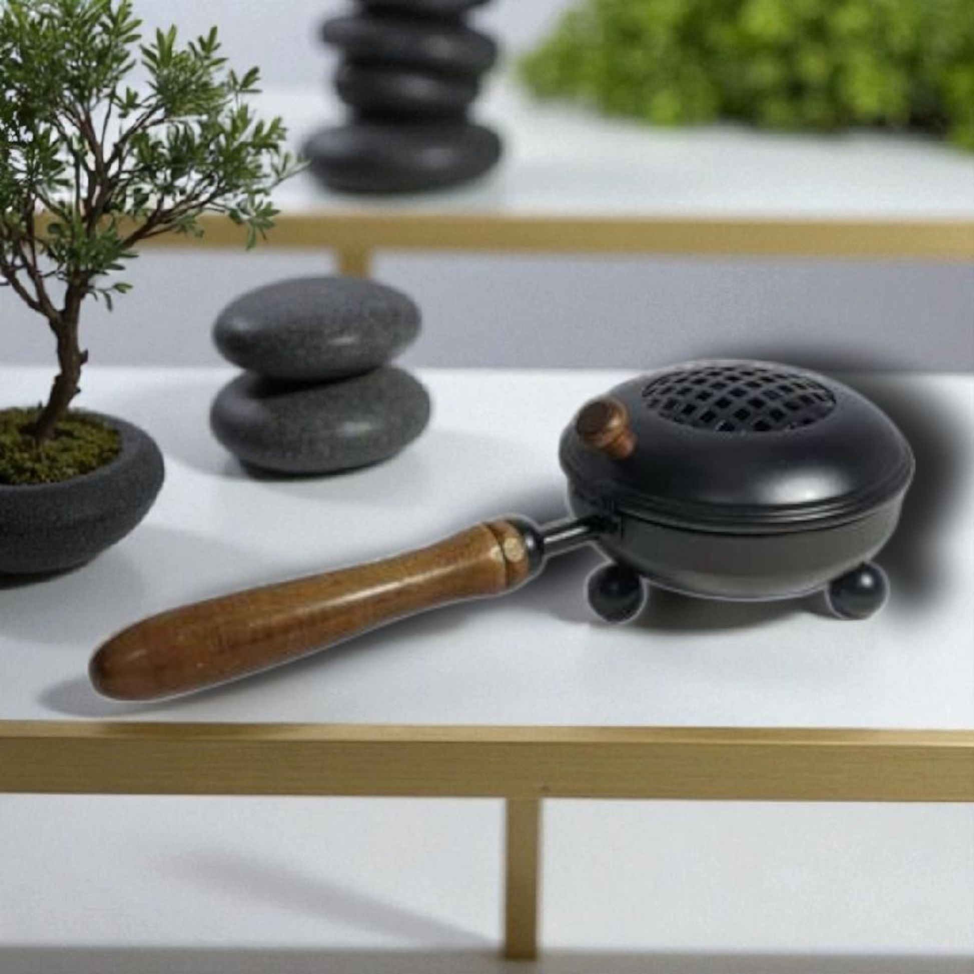 El "quemador con mango de madera de 27cm" es tu aliado para elevar tus momentos de paz y conexión espiritual.
