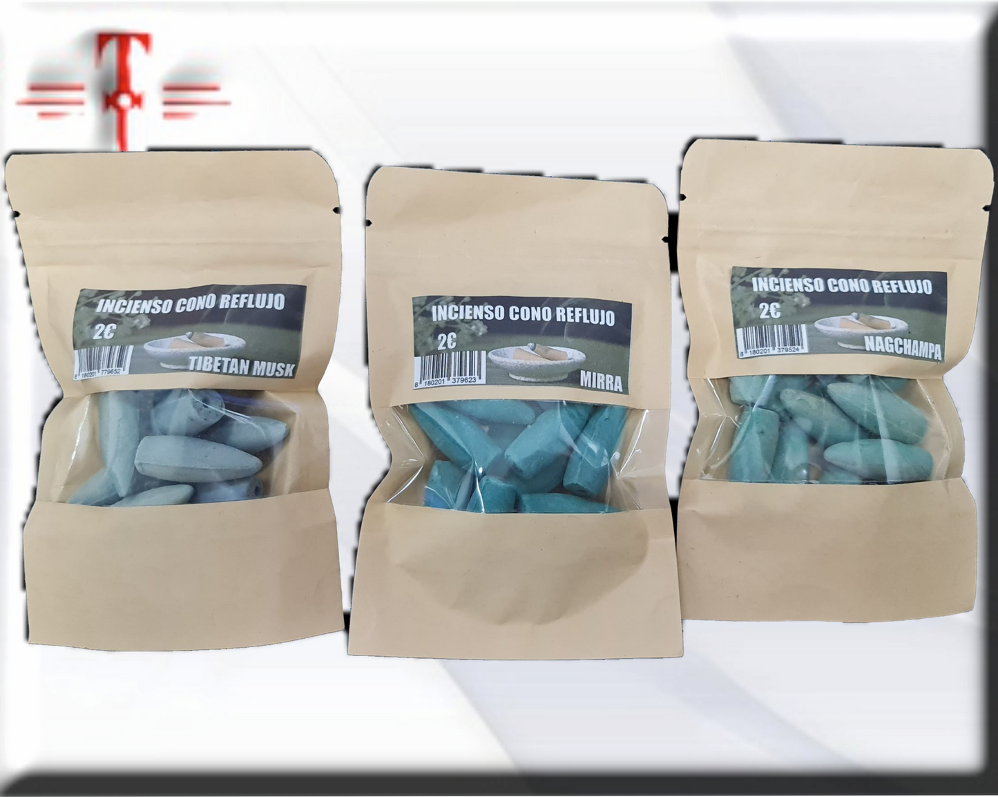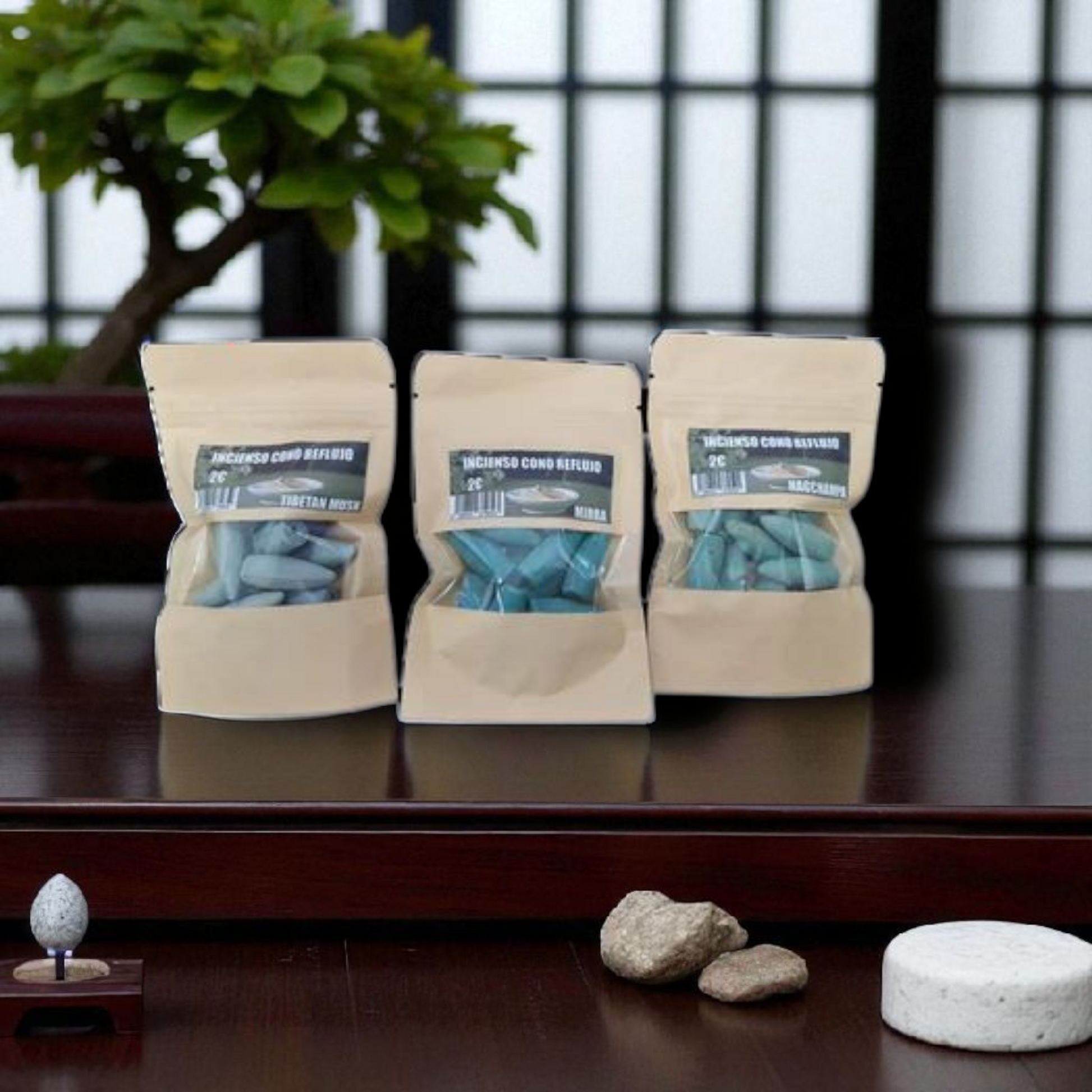 Los conos de reflujo, también conocidos como "backflow", son conos de incienso diseñados para quemarse de manera que el humo descienda en lugar de subir, creando un efecto visual de cascada
