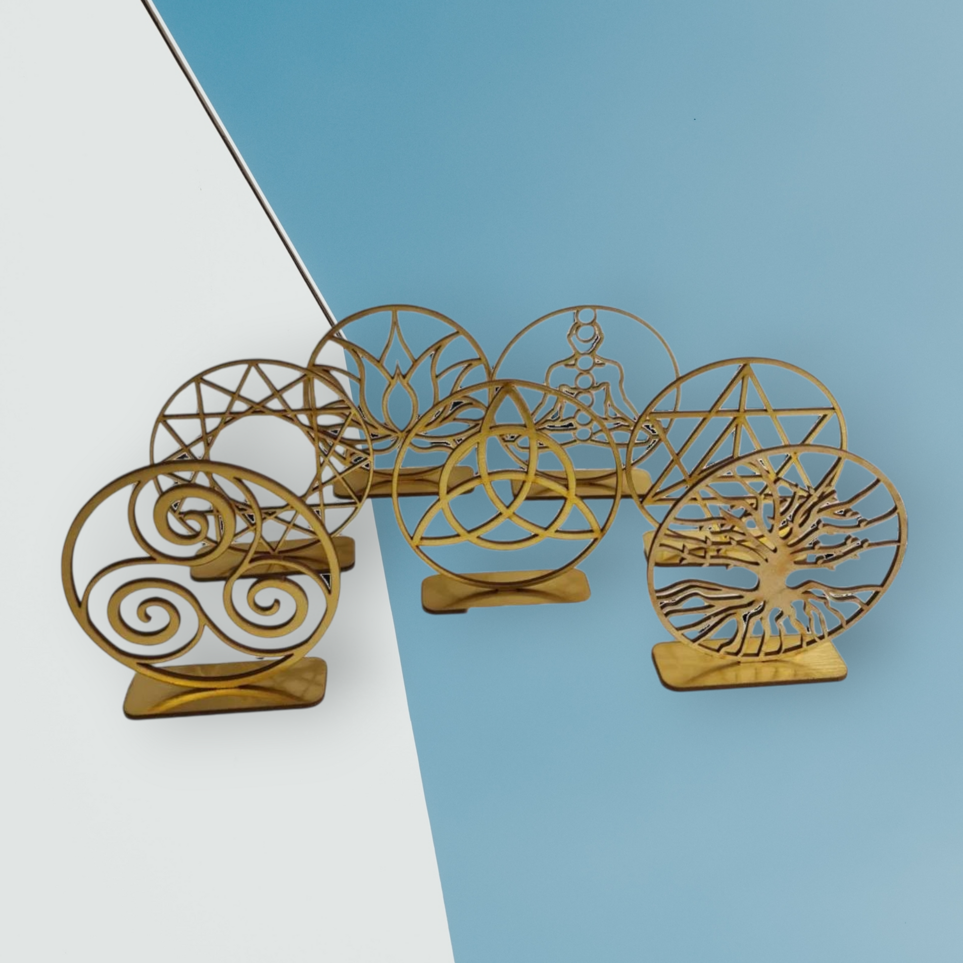 Los símbolos de madera al corte láser son piezas elaboradas con precisión, ideales para decoraciones o prácticas espirituales.