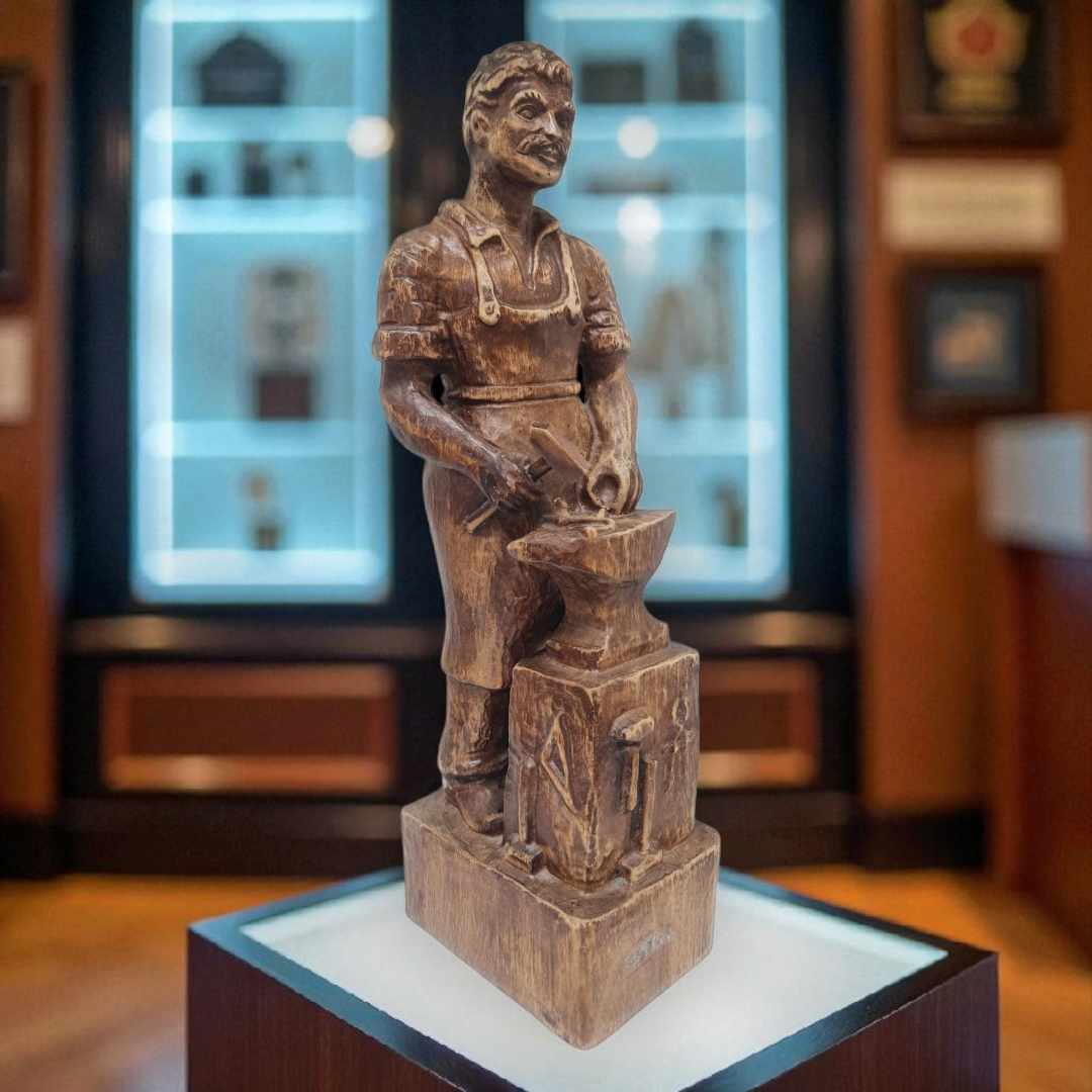 ! Una obra de arte en madera tallada con esmero, reflejando la mística y el arte del herrero.