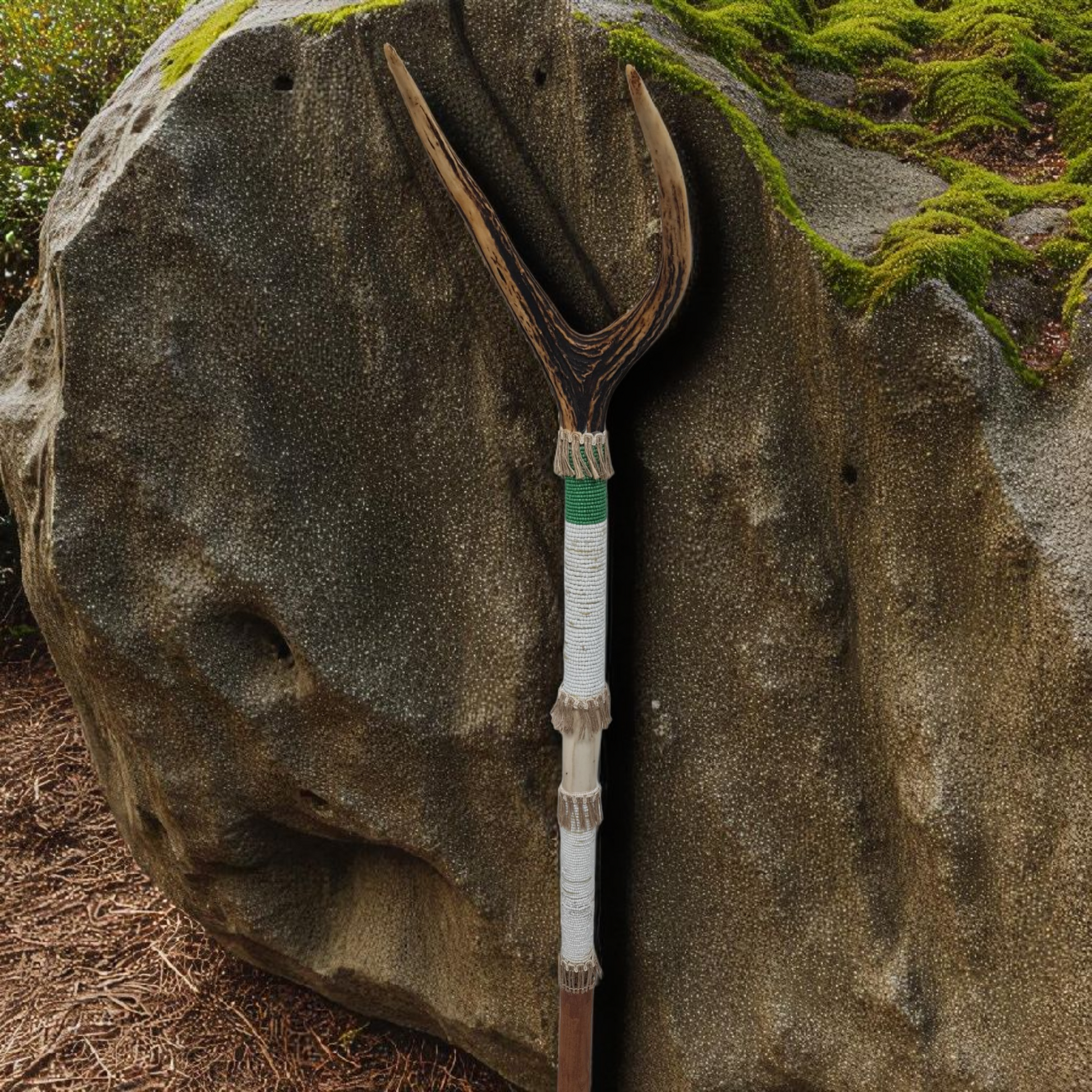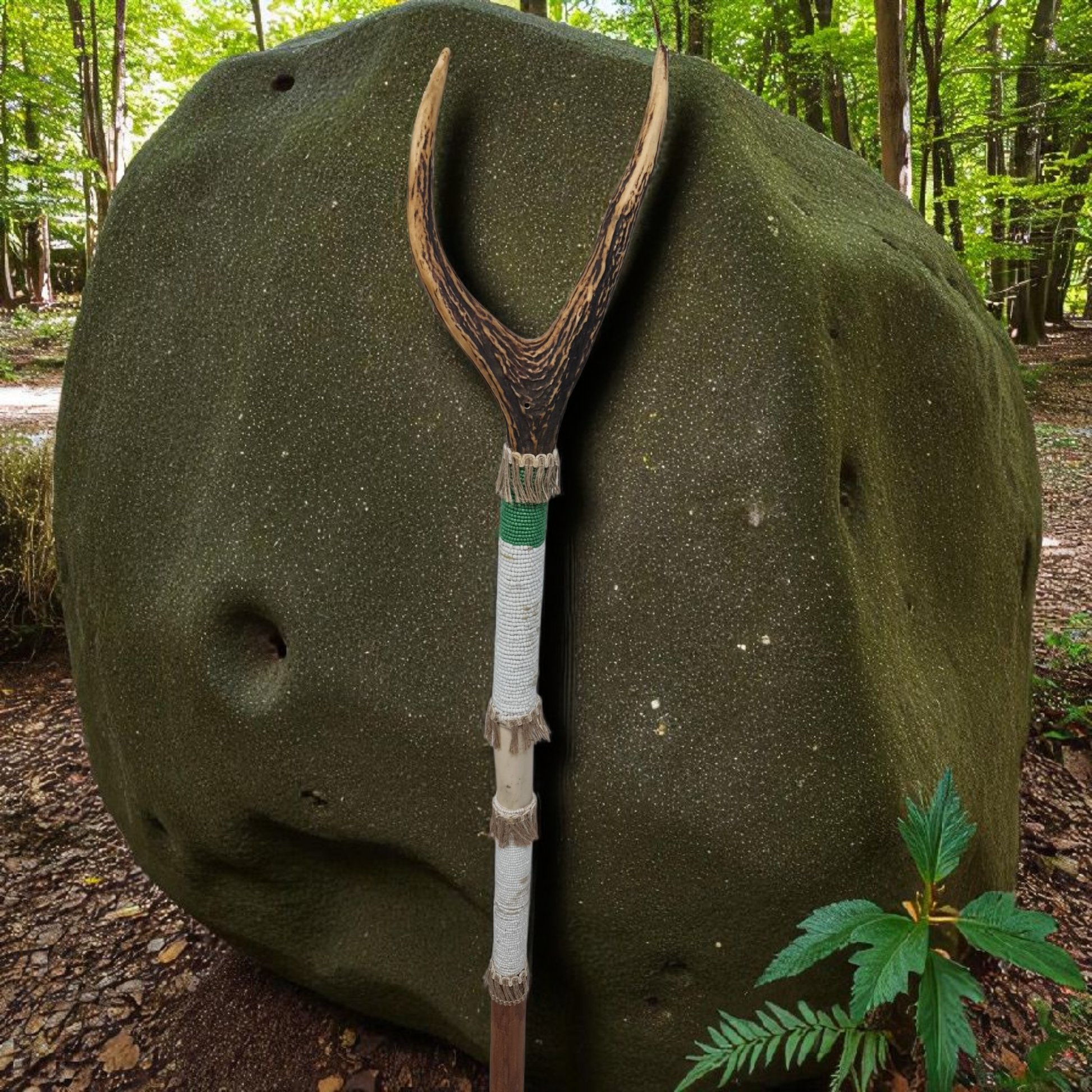 Este bastón incorpora semillas africanas y está relacionado con prácticas de santería, Palo Mayombe y voodoo, lo que lo convierte en un objeto de interés cultural y espiritual.