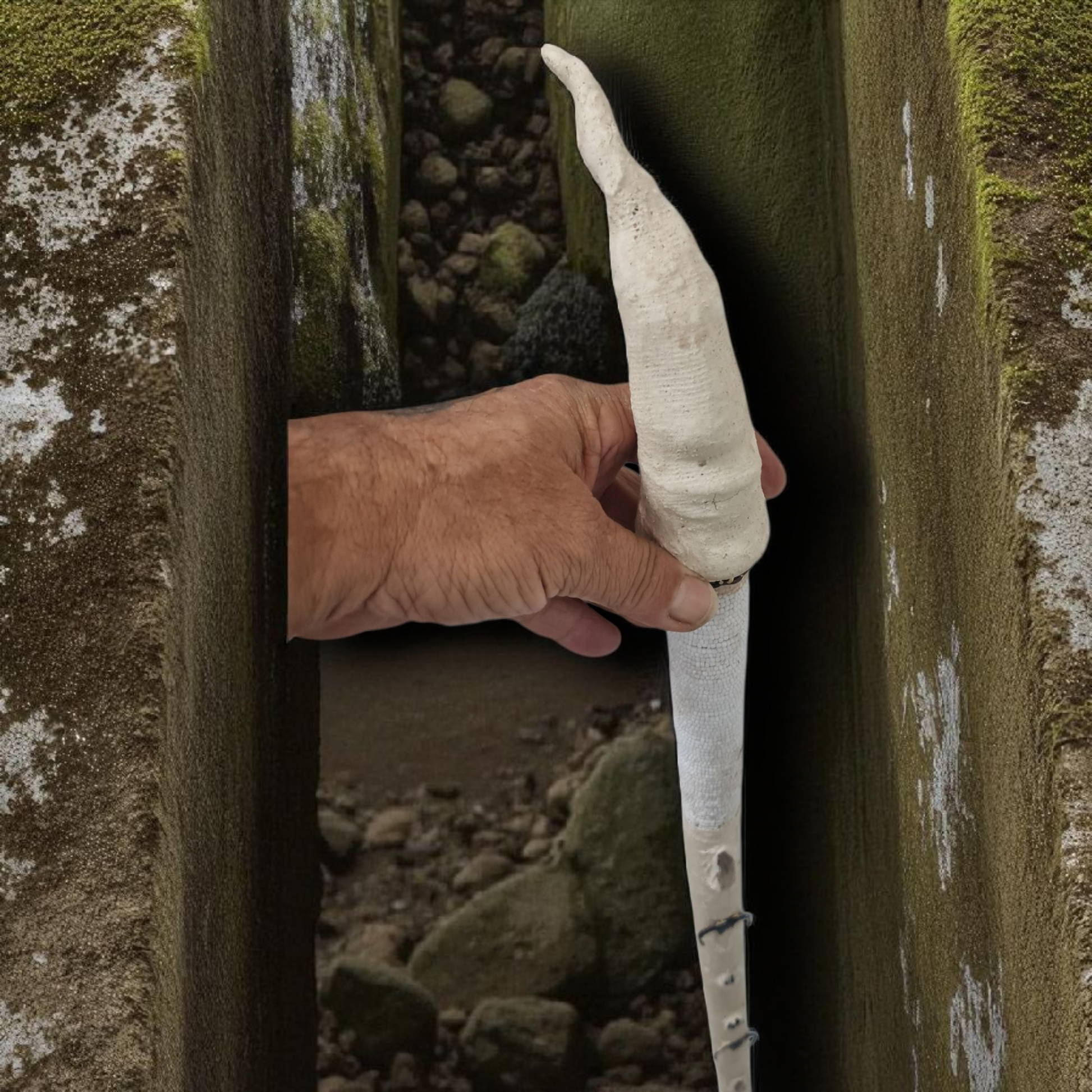 El bastón Legba está fabricado en madera de alta calidad, lo que le proporciona resistencia y durabilidad.