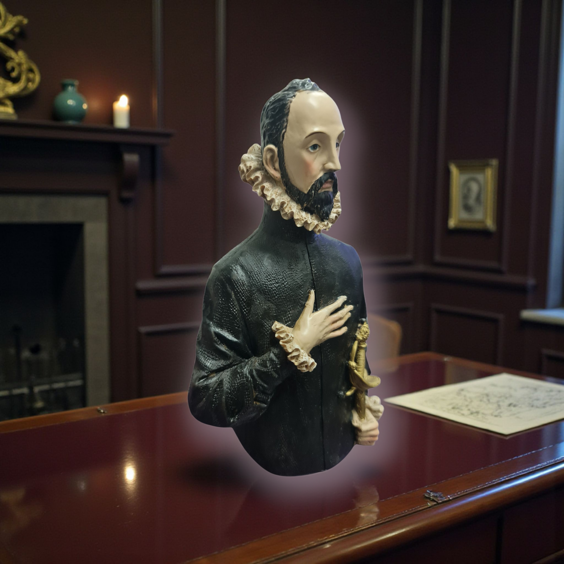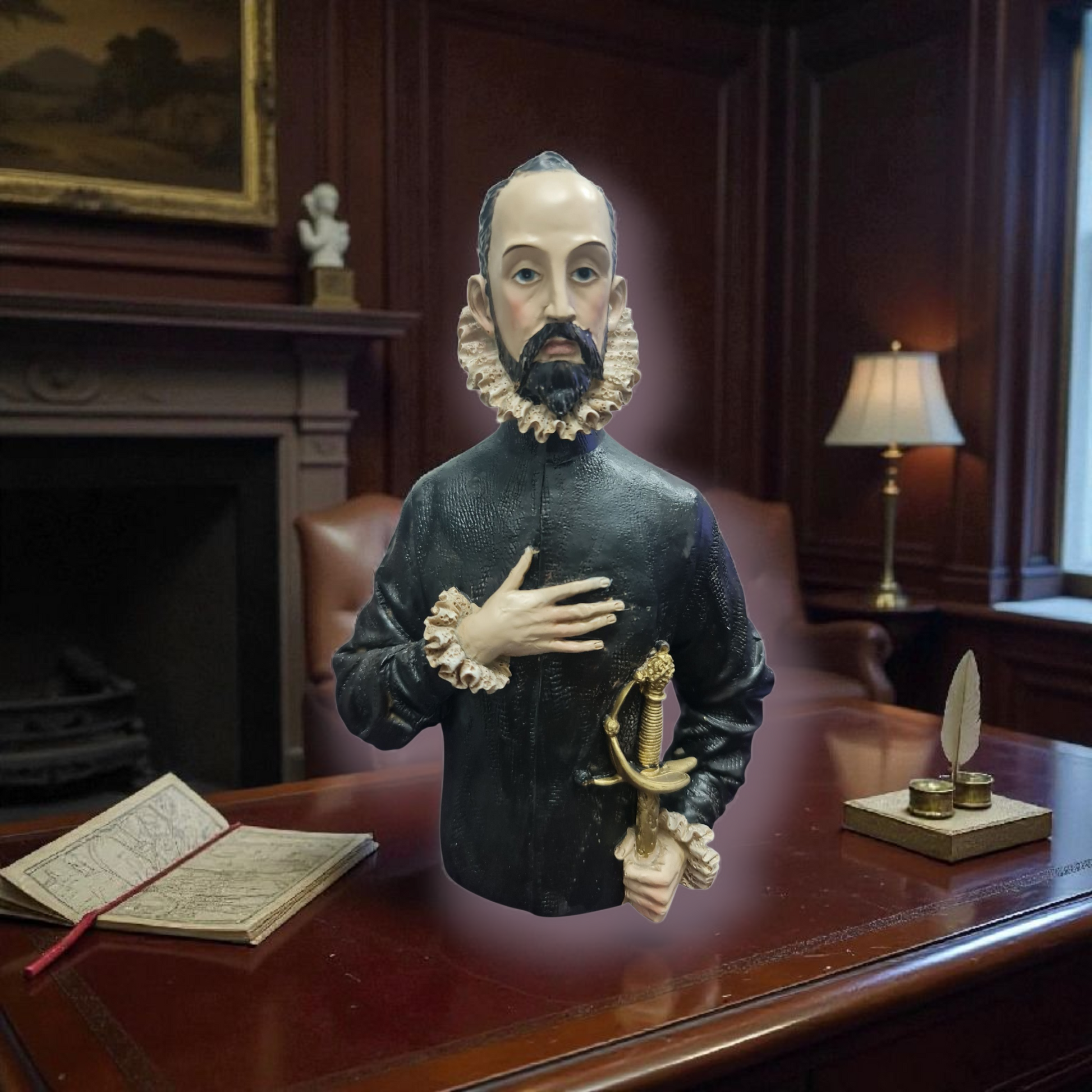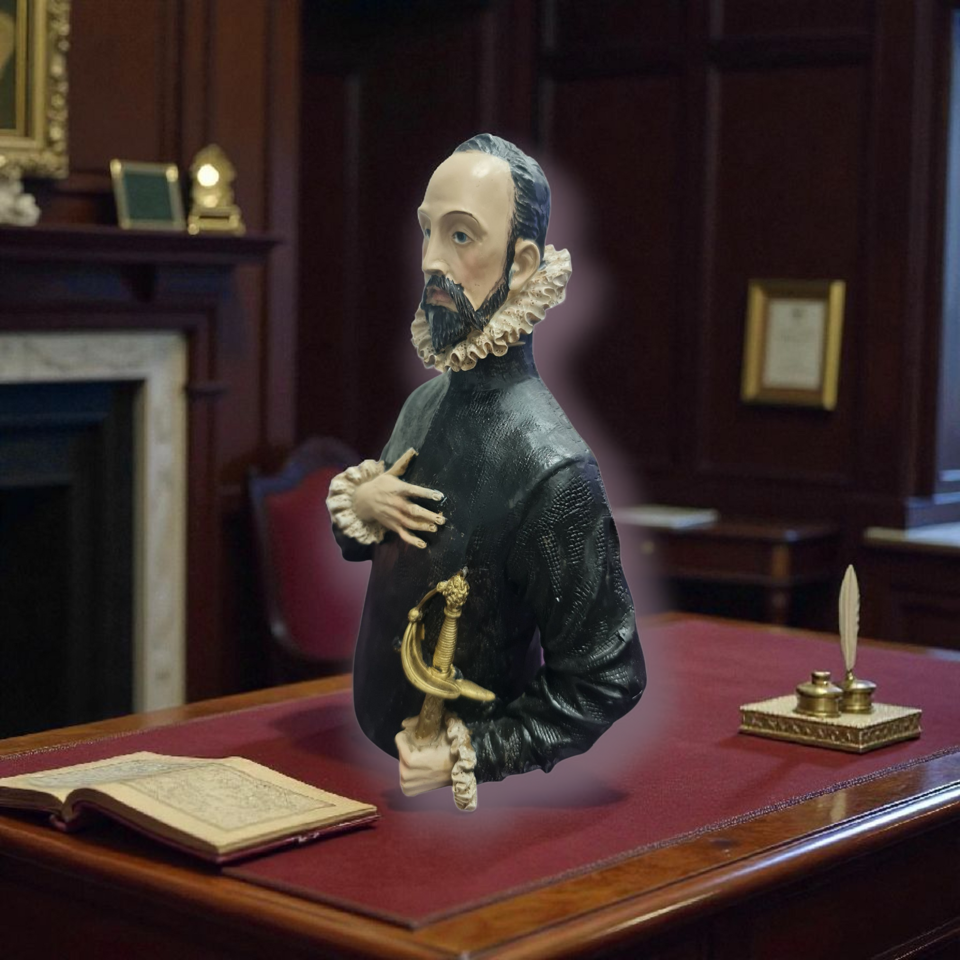 El caballero de la mano en el pecho es una representación artística que evoca un sentido de honor y respeto.