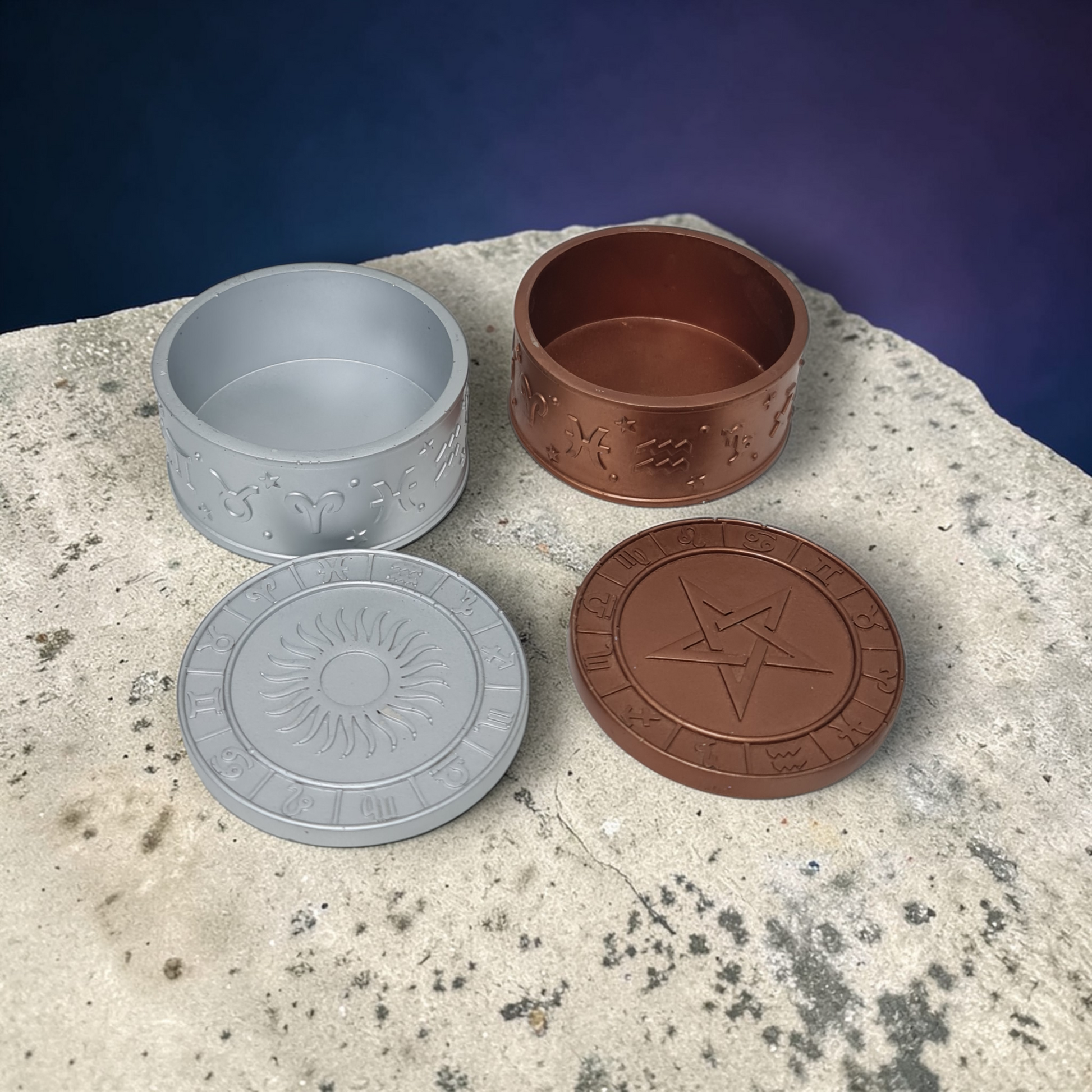 La caja con pentagrama tiene un diámetro de 9 cm y está elaborada en resina, lo que le confiere durabilidad y un acabado atractivo.