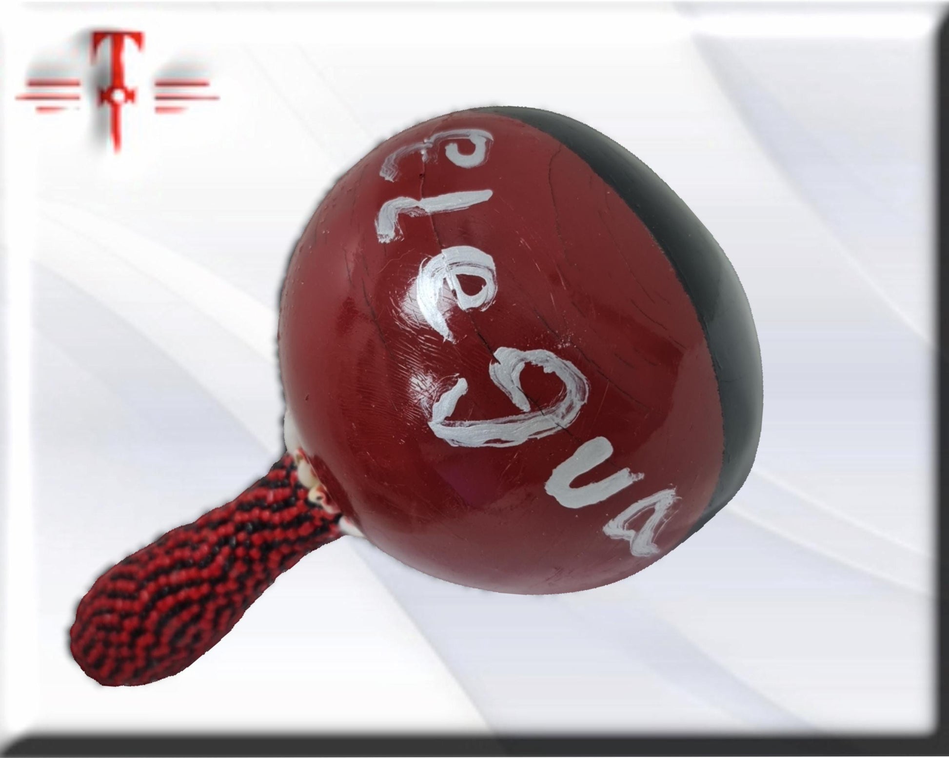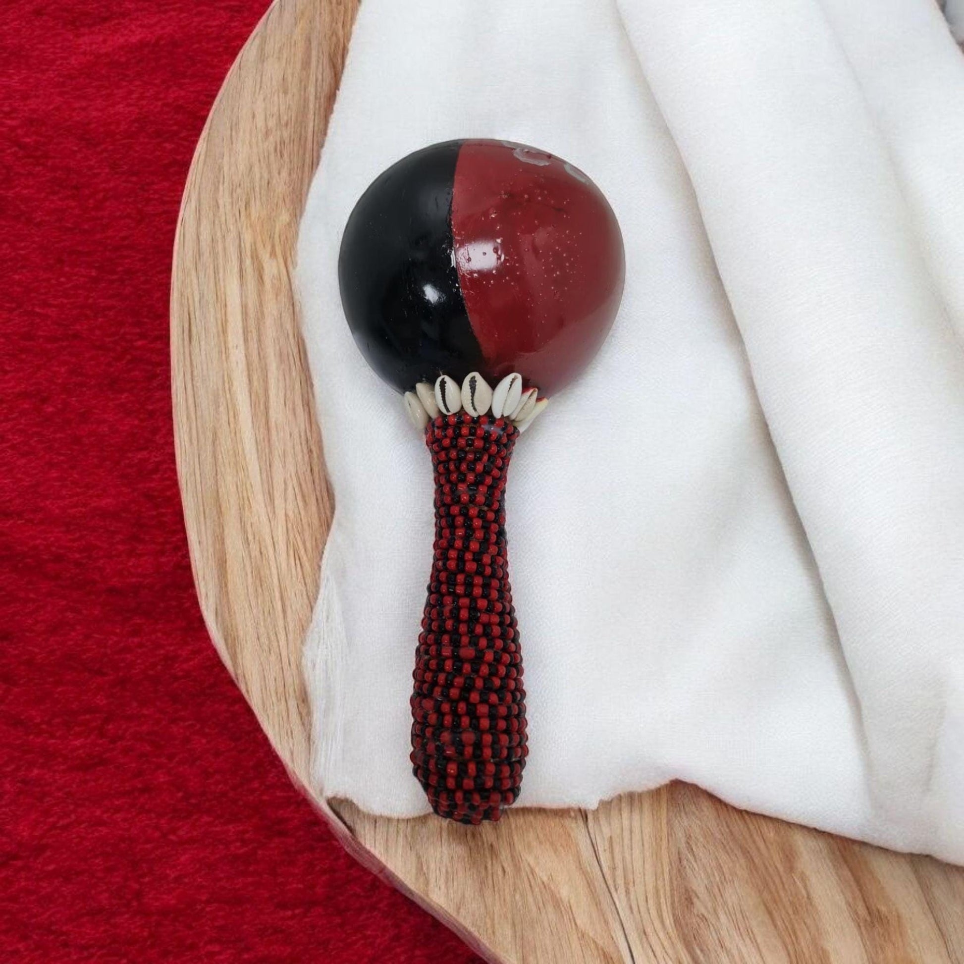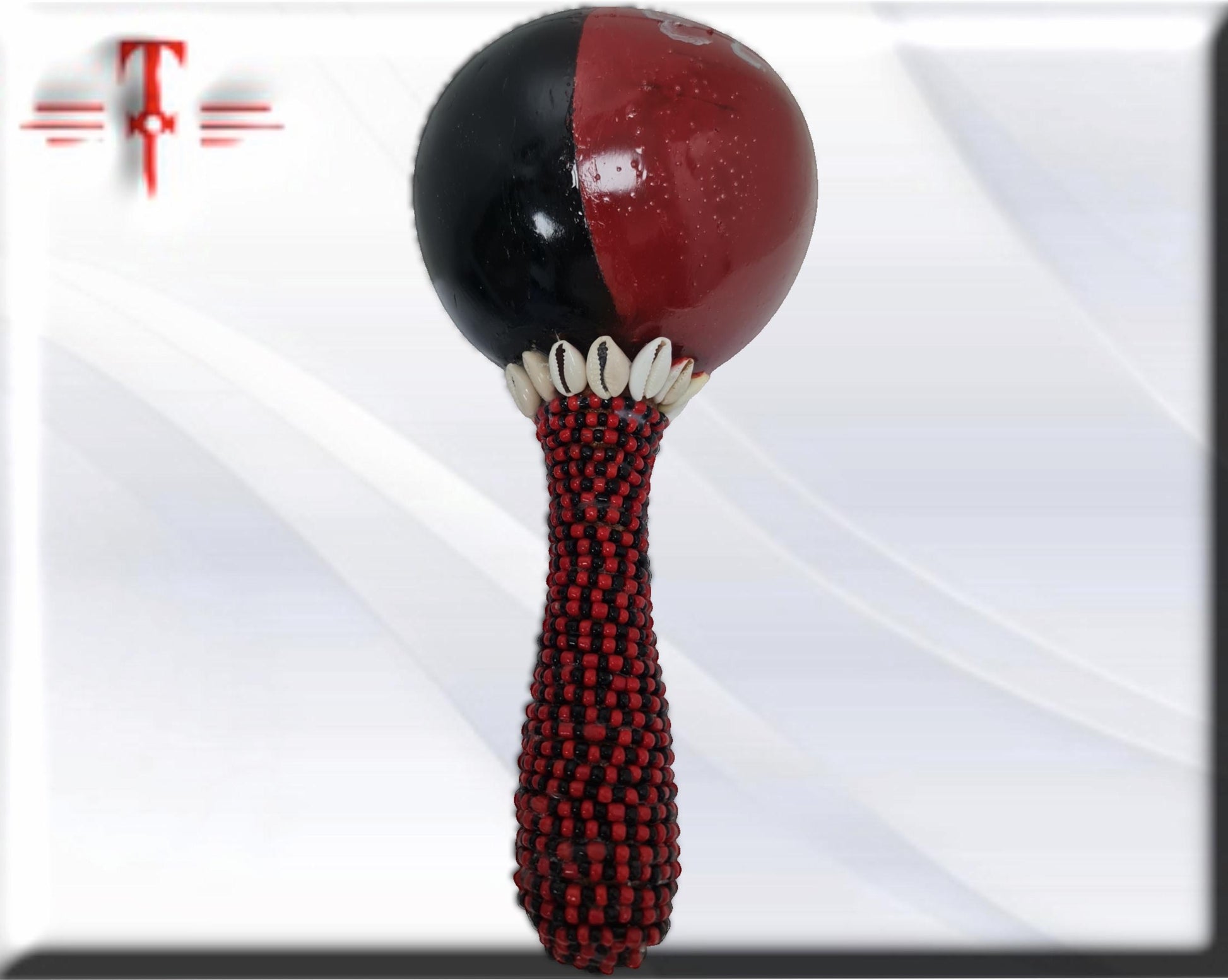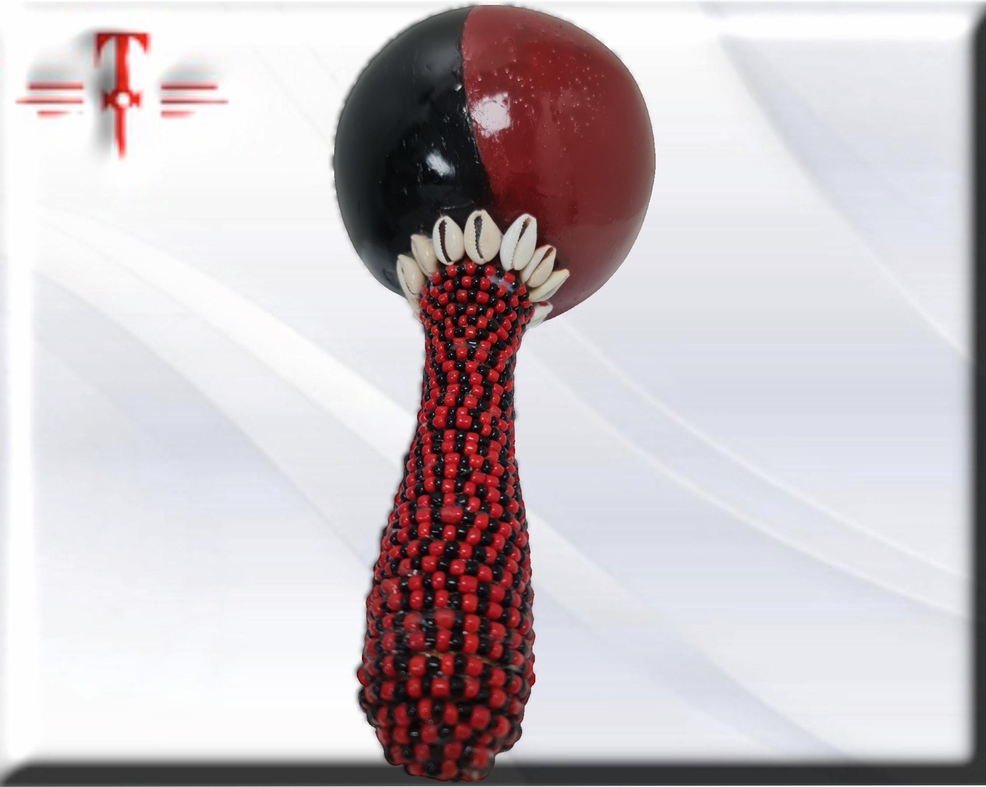 Maraca parael orisha Elegua forrada con cuentas . Maraca:
