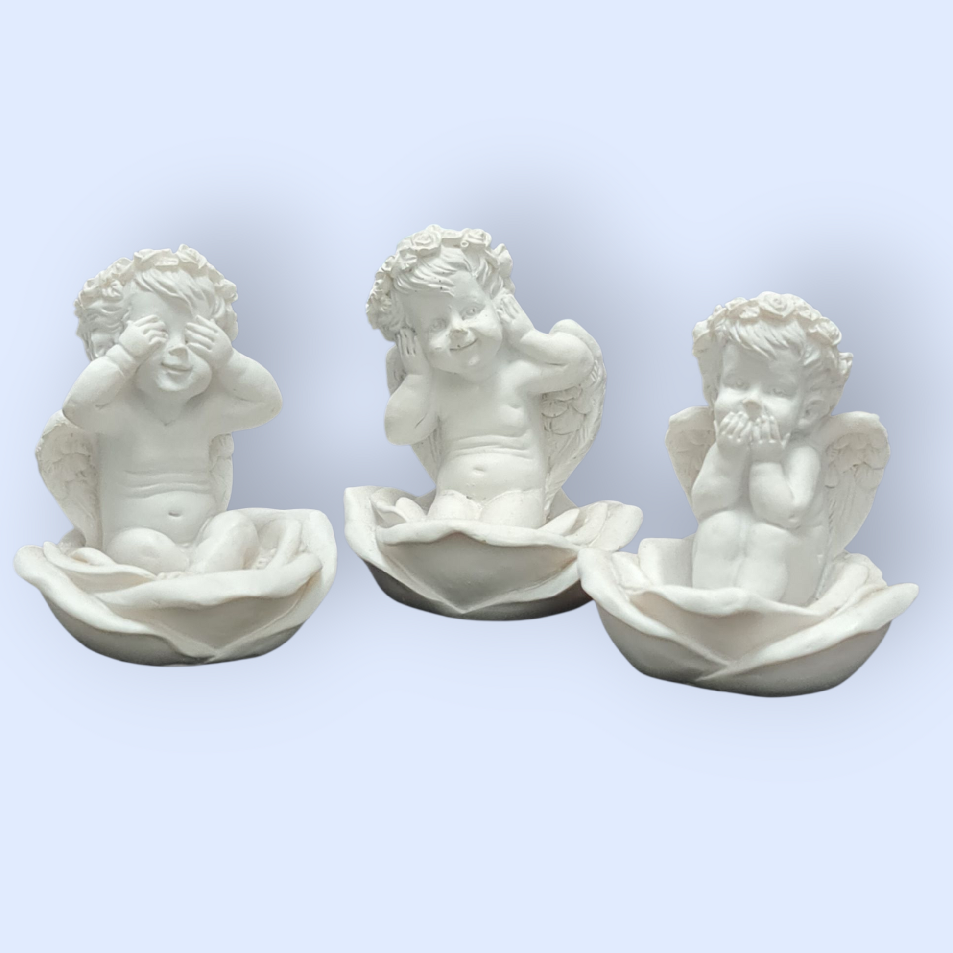 Este conjunto incluye tres querubines de 7 cm, cada uno en una posición distinta.