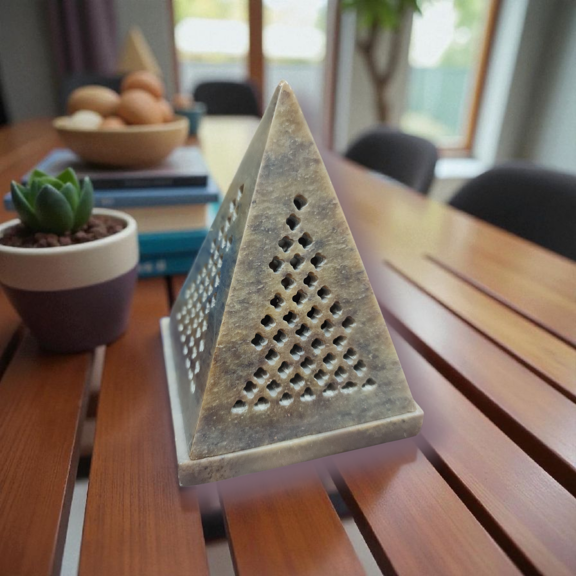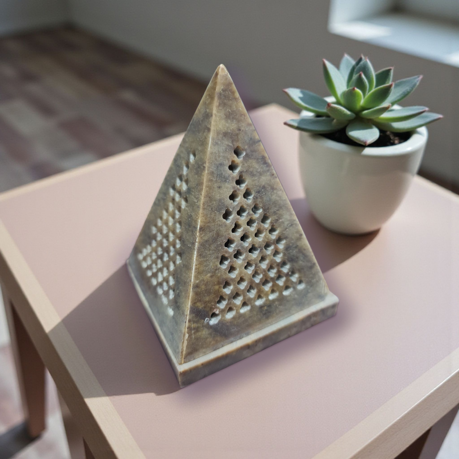 El "Porta velas pirámide Piedra" de SPOTENCIAS es la elección perfecta para añadir un toque rústico y elegante a tu hogar.