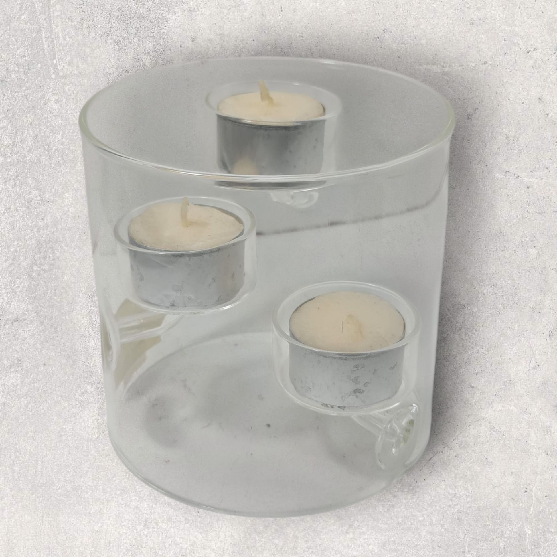 El " Porta velas cristal " de SPOTENCIAS , para 3 velas de Té , es la elección perfecta para añadir un toque r elegante a tu hogar.